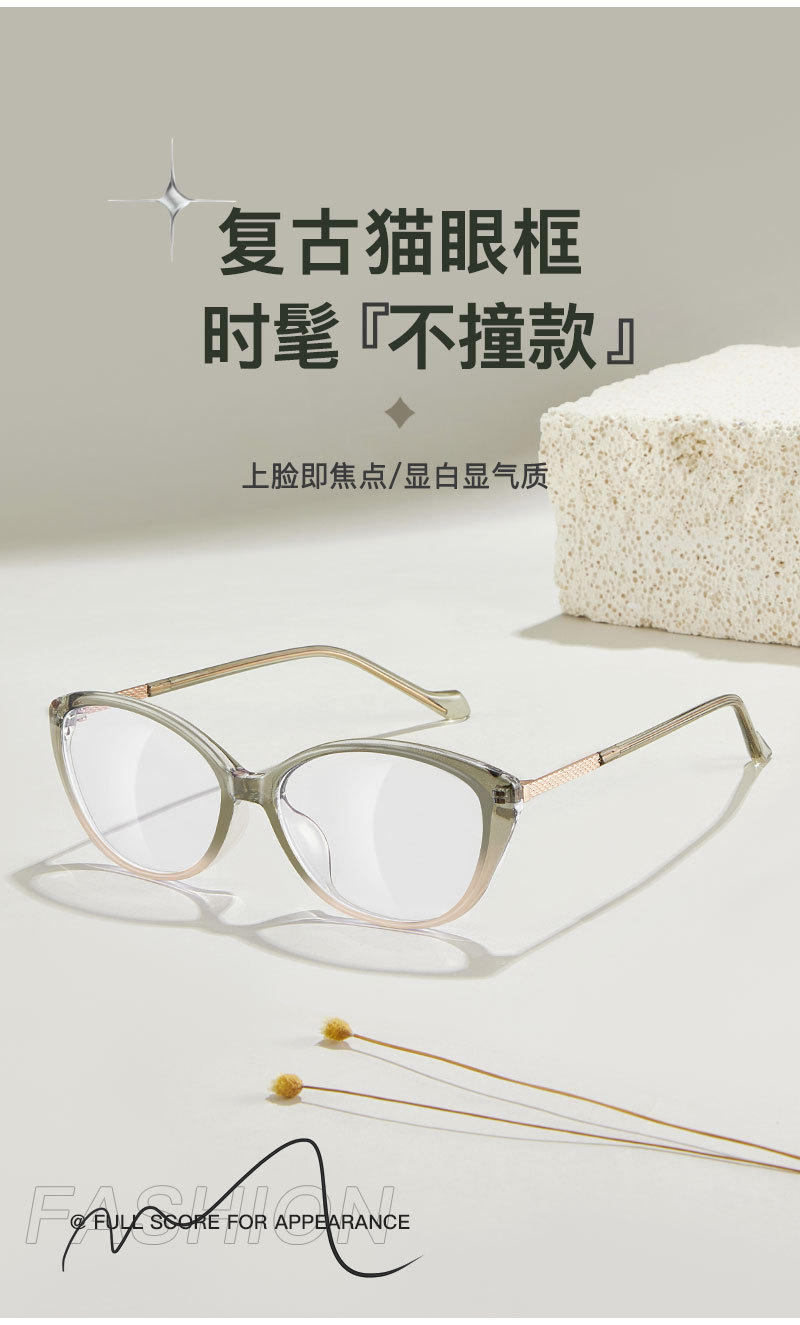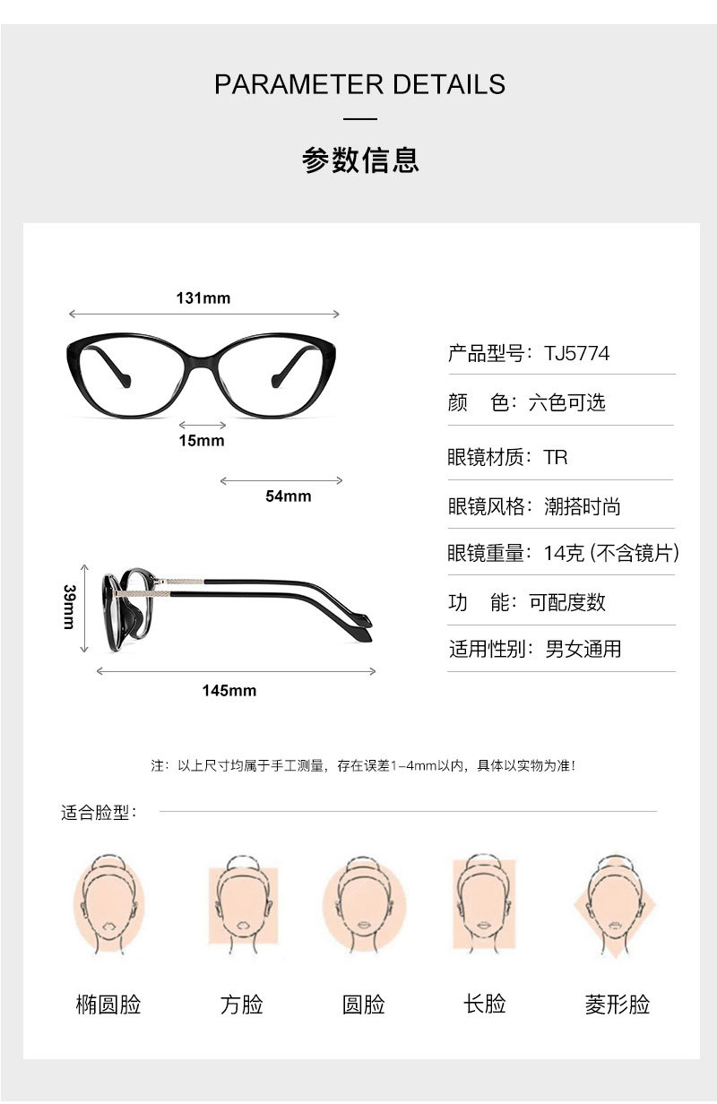 Venta al por mayor de celebridades de Internet sin maquillaje Marco de ojo de gato TR Marco de gafas anti-azul Danyang de lado ancho de 3mm puede equiparse con marco de miopía