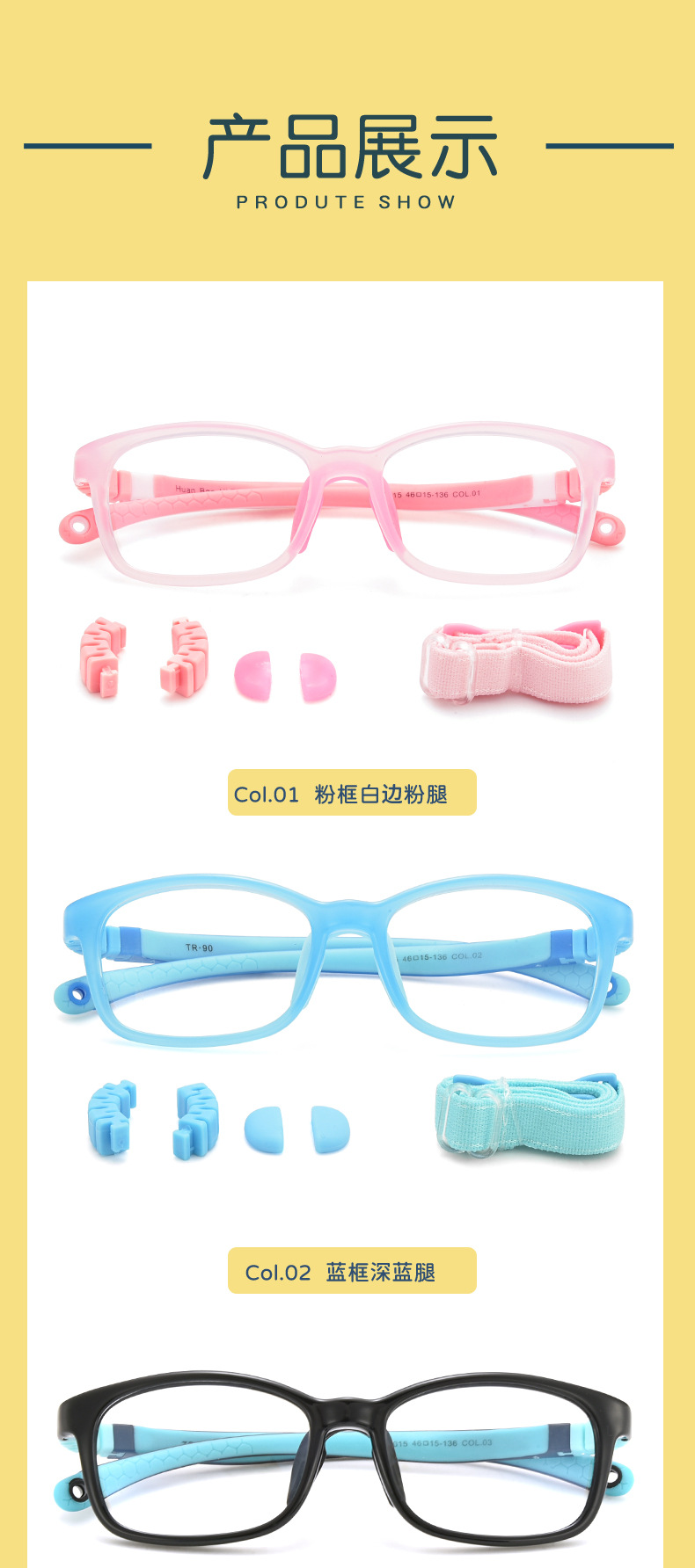 Marco de gafas de miopía infantil siete colores luz opcional tr90 Marco de gafas para niños ligero flexible Marco de gafas para niños
