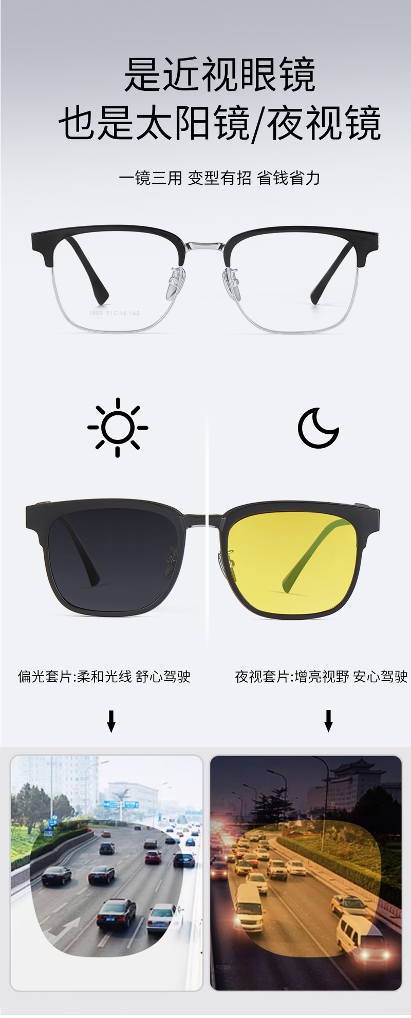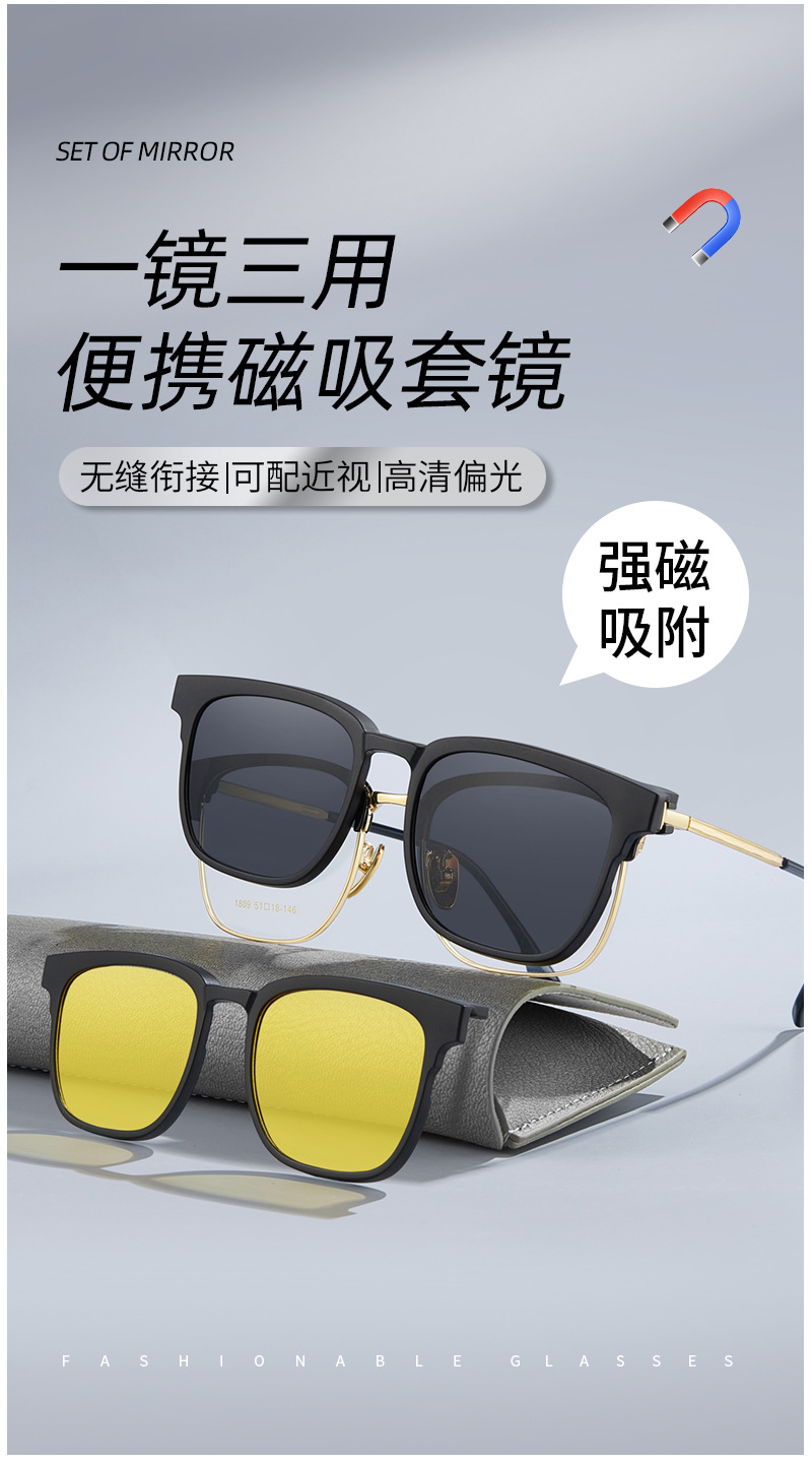 Clips de absorción polarizante de alta definición con gafas de sol miopía aleación ceja marco de gafas de negocios marco de gafas de sol al por mayor