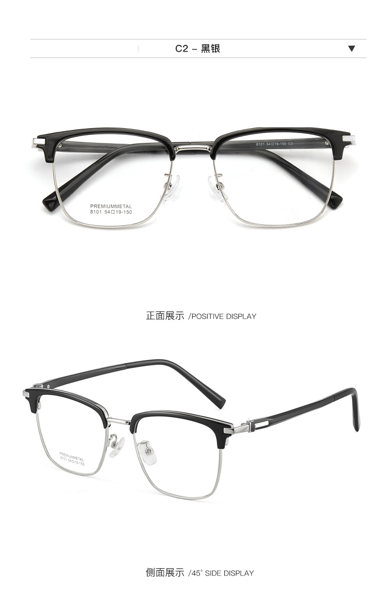 Tipo masculino de cejas de cejas de brazo de aleación de ocio marco de gafas para la piel ajustable antideslizante soporte de nariz con espejos Danyang al por mayor
