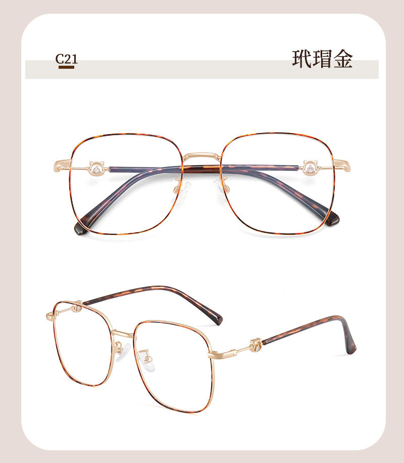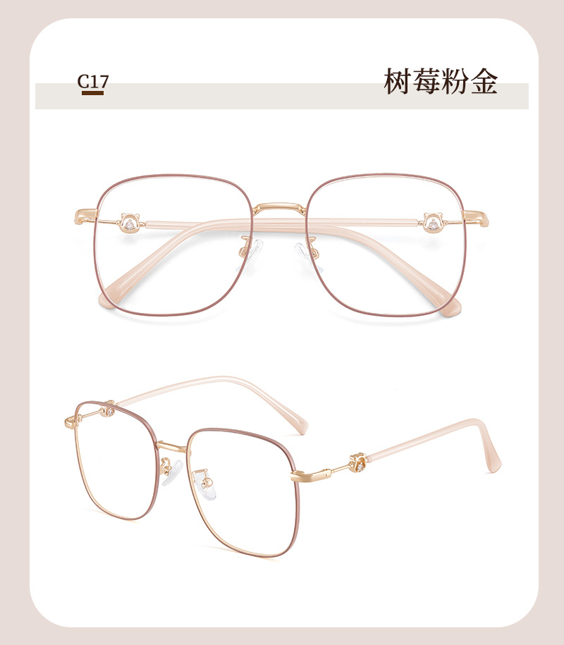 Yuanqi chica retrógrado gran marco dulce oso aleación metal marco de gafas antideslizante silicona suave soporte de nariz al por mayor con gafas