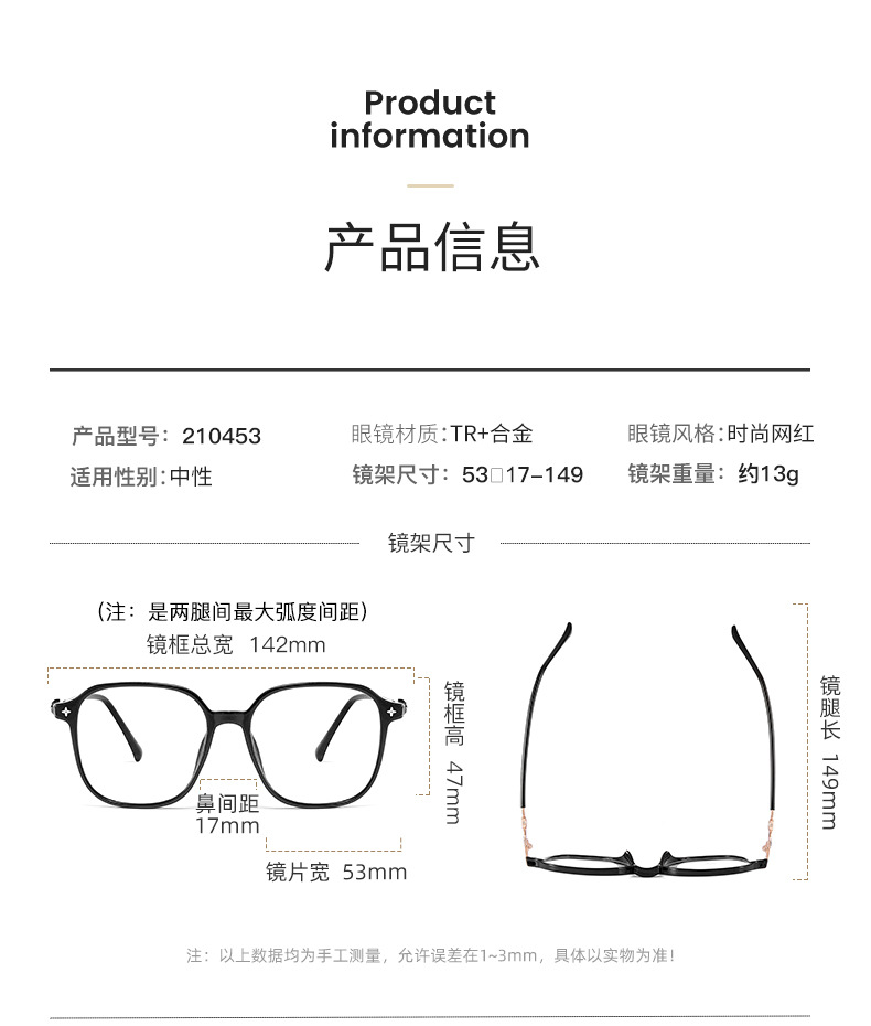 Red net TR retrógrado marco de gafas de cara normal marco de 4 mm de borde ancho de alto nivel anti-luz azul grado de estilo coreano ins
