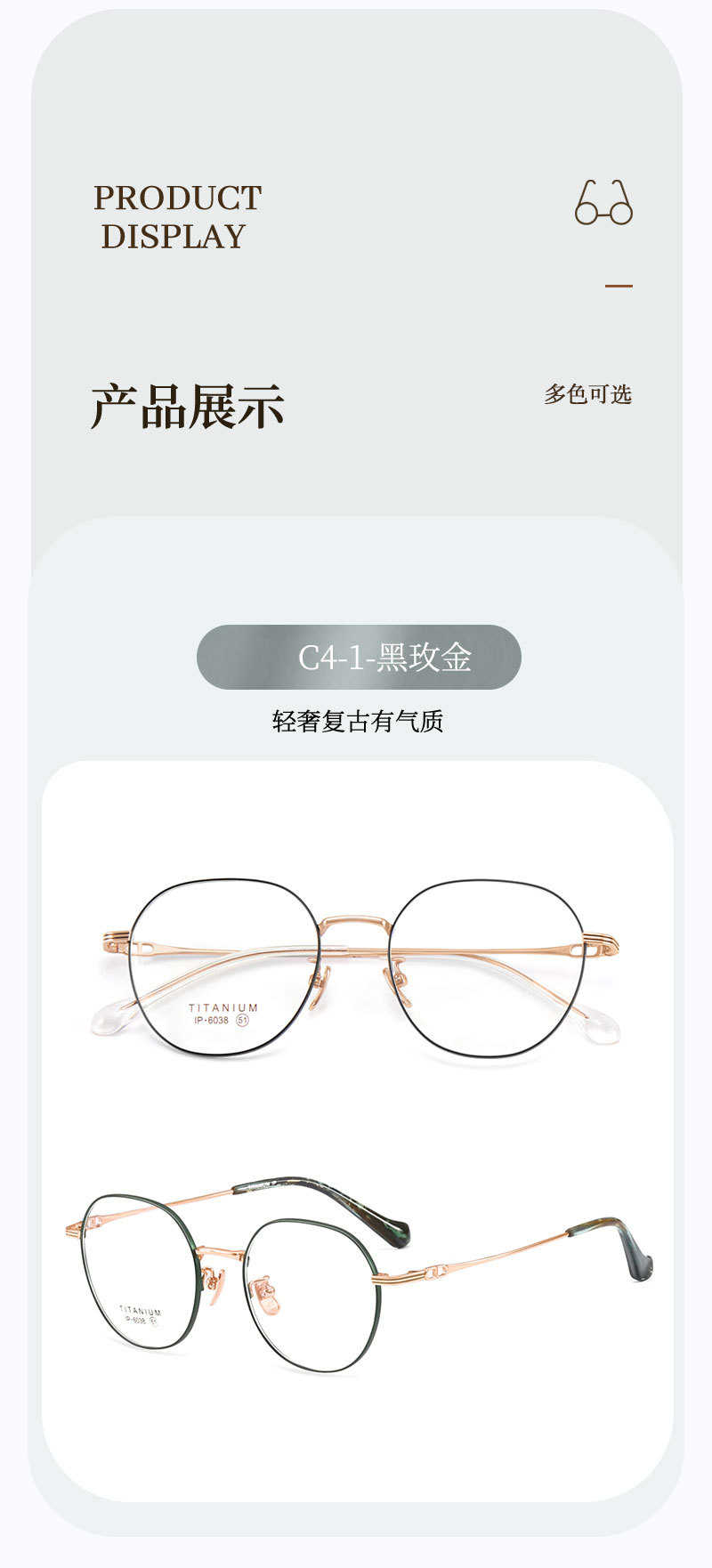 Shenzhen de alta calidad de titanio puro retro gafas Marco de moda de dos colores diseño miopía ambliopía gafas unisex