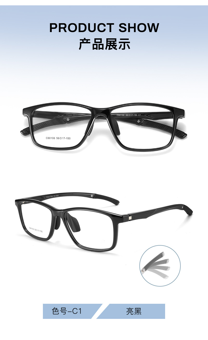 Gran cara de hombre juvenil ultra-dúctil deporte EMS marco de gafas ajustación de piernas anti-deformación Danyang gafas mayoristas