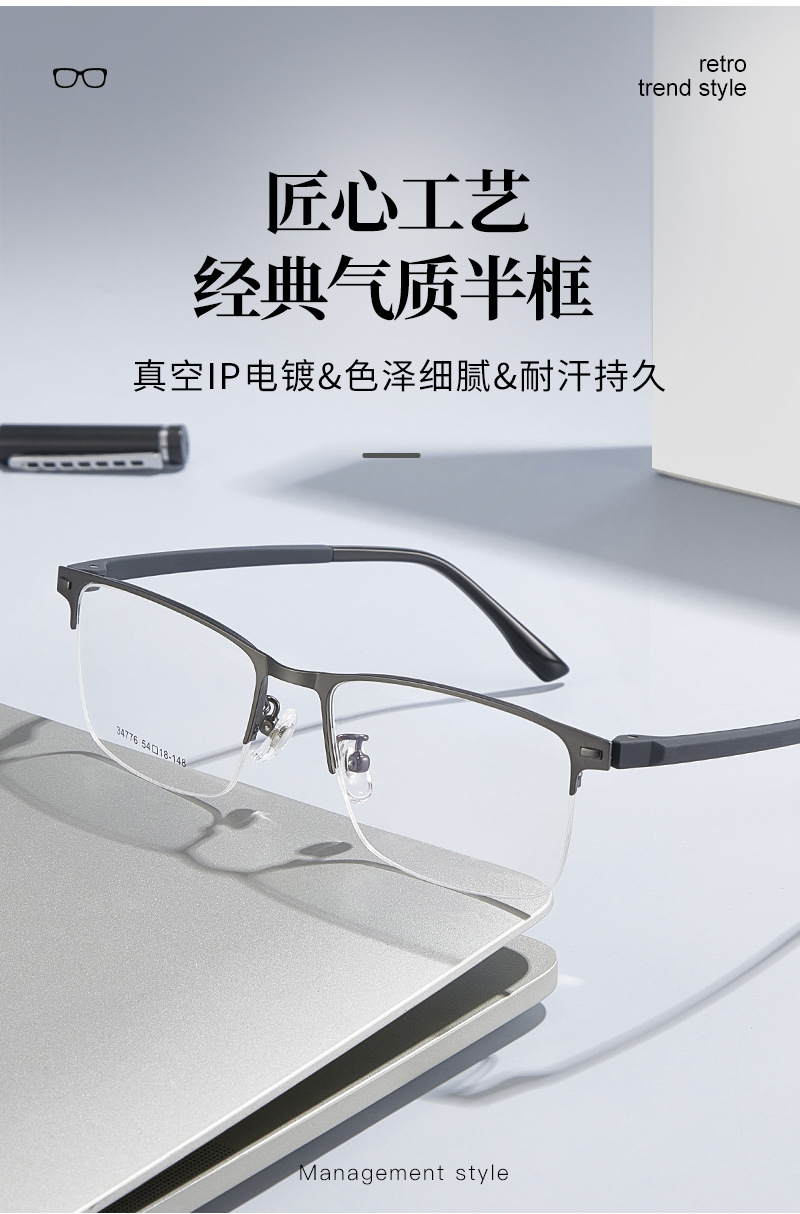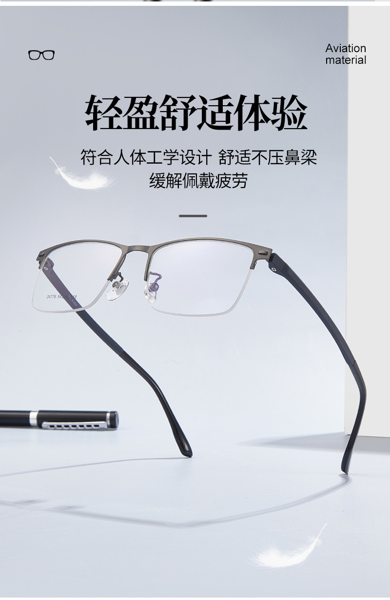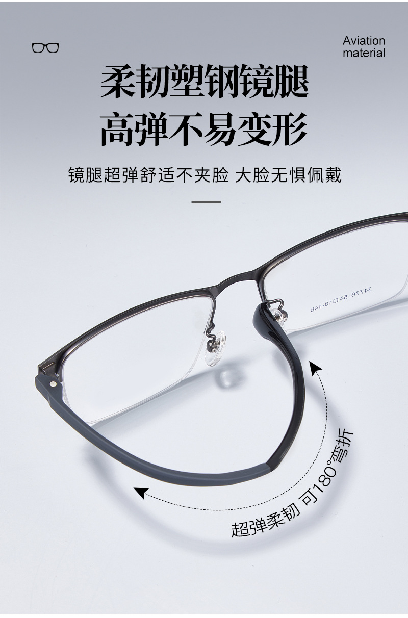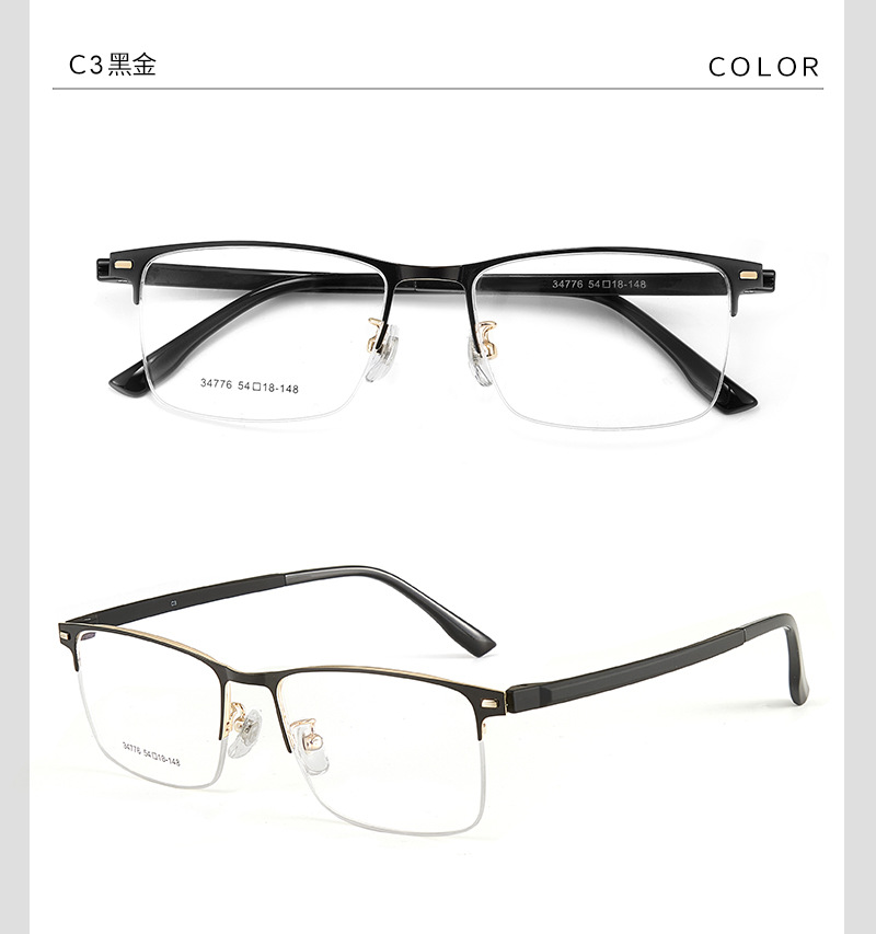 Mayorista de gafas metálicas masculinas de politecnología de transporte de negocios de aleación de medio marco marco de gafas de acero antideslizante con gafas al por mayor
