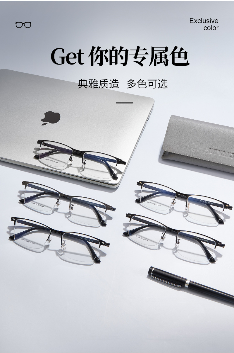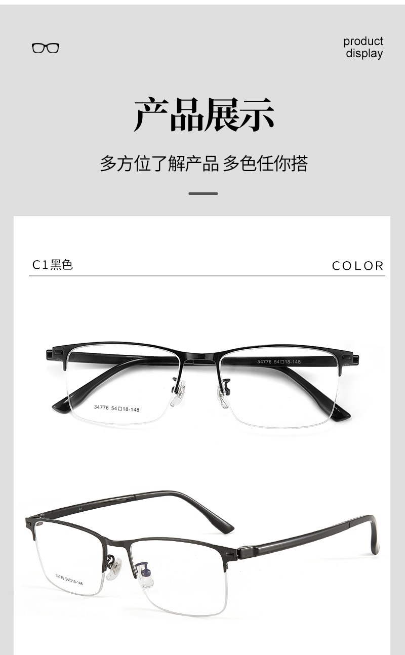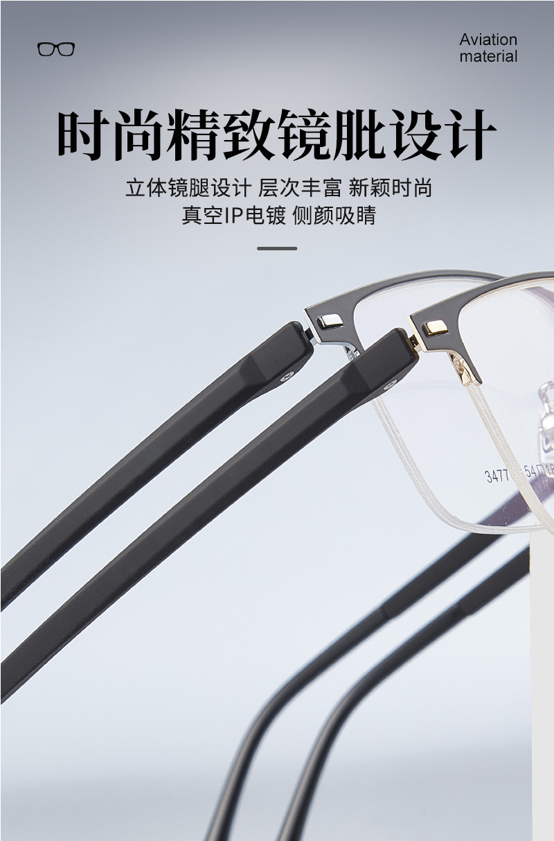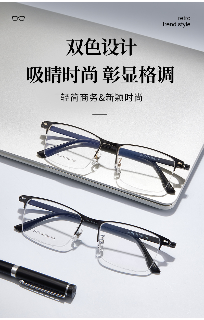 Mayorista de gafas metálicas masculinas de politecnología de transporte de negocios de aleación de medio marco marco de gafas de acero antideslizante con gafas al por mayor