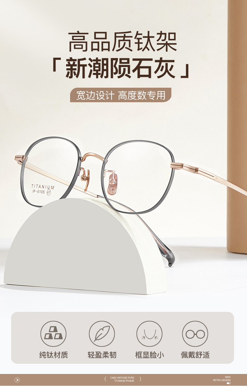 Moda meteorito gris retro marco oval gafas de titanio puro Marco de vacío IP galvanoplastia gafas de borde ancho con gafas Danyang lote