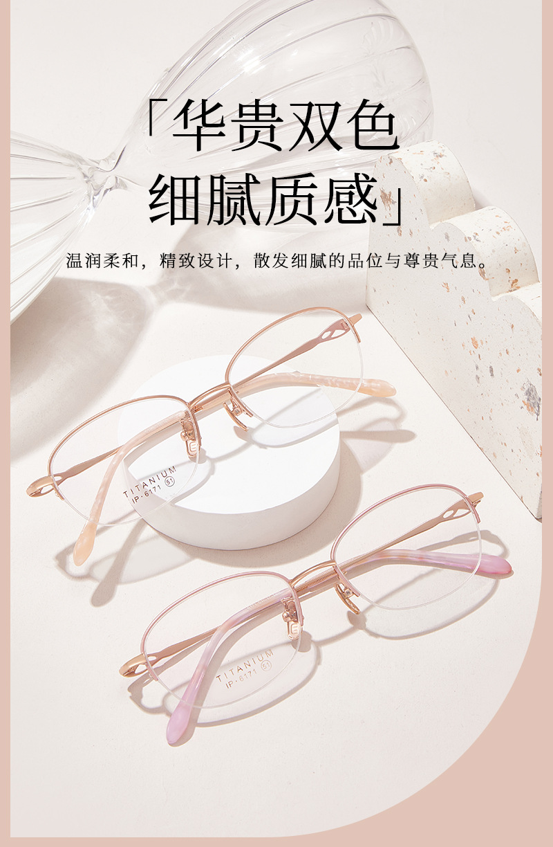 Liu Yan Huagui damas gafas de medio marco de moda retrógrado tallado antideslizante titanio puro soporte nasal puede coincidir con el número de lote Danyang