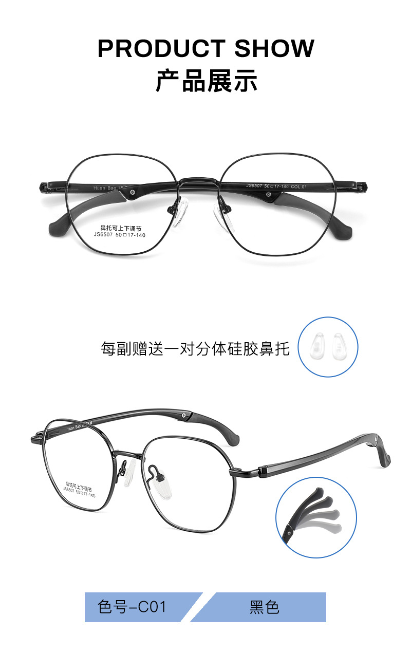 Aleación ultraligera + marco de gafas de estudiantes de acero plástico ultra dúctil ajustable hacia arriba y hacia abajo soporte nasal de silicona puede equiparse con gafas miopes al por mayor