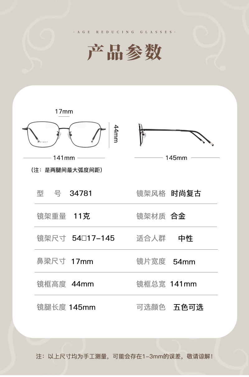 Hombres y mujeres con el mismo estilo, marco cuadrado exquisito, marco de espejo de moda retro de metal, negocio casual, tendencia de todo fósforo, espejo al por mayor