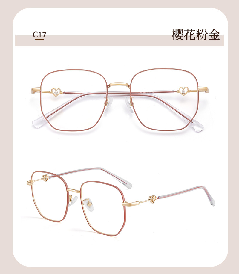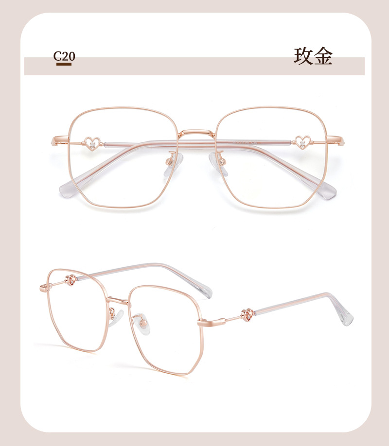Simple cara gran marco dulce amor cabeza de pila metálica retrógrada marco de gafas rojas antideslizante no pellizco cara con espejo marco mayorista