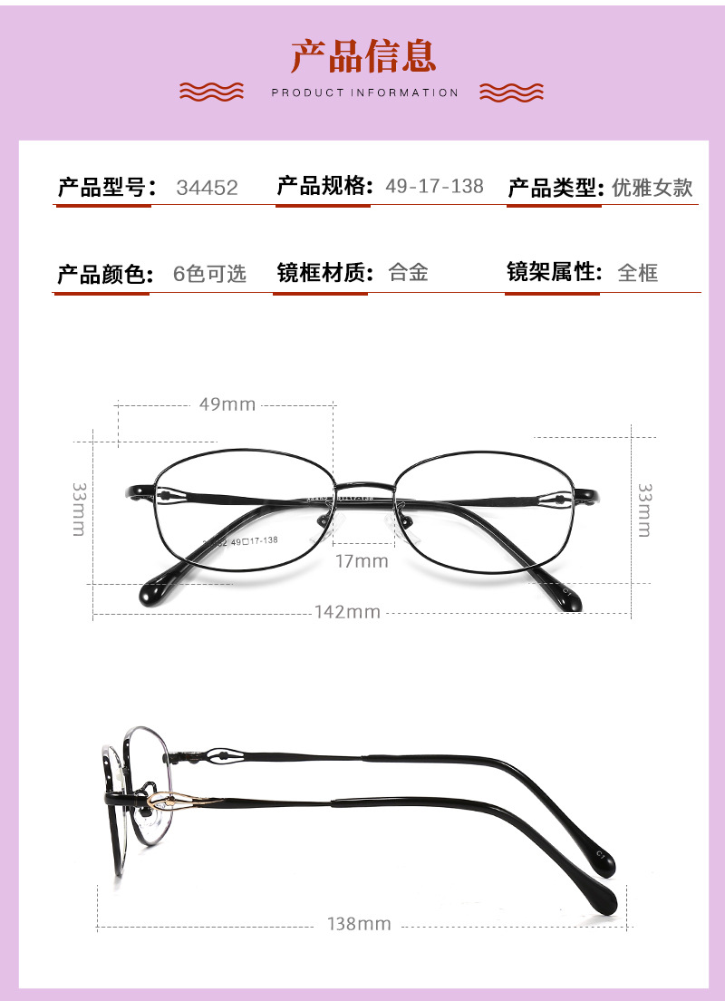 Ligero y cómodo marco completo elegante de las mujeres gafas de marco completo marco de la miopía presbicia puede ser equipado con grados Danyang al por mayor