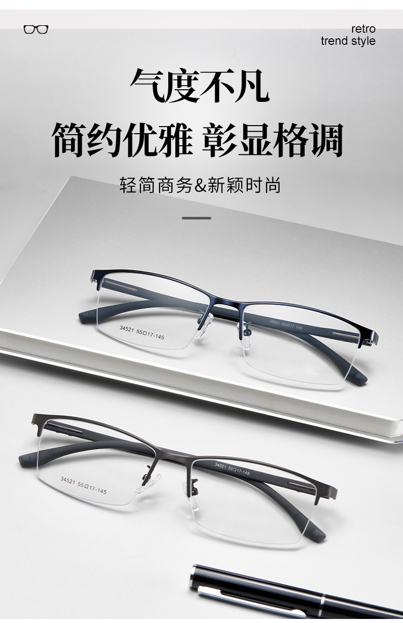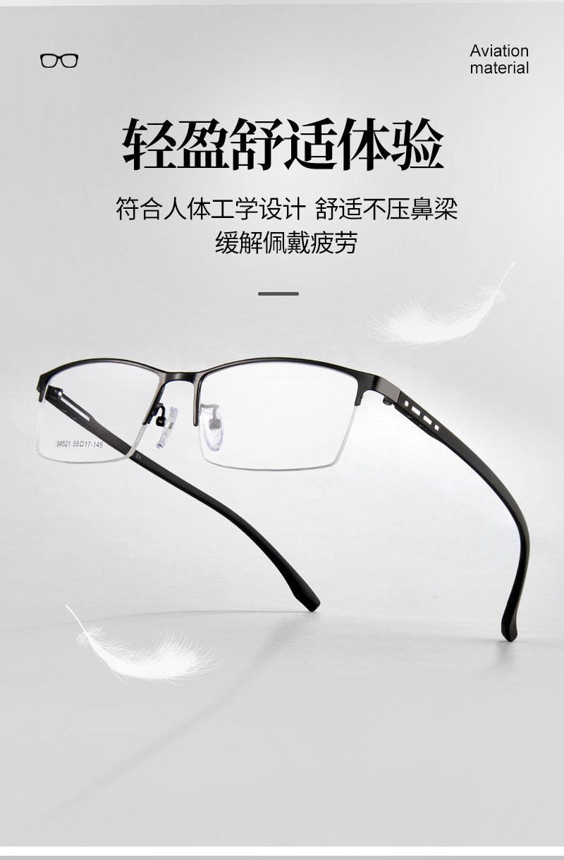 Commuter casual hombres de aleación gafas marco oficina de negocios ultra-ligero cómodo cojín de la nariz de silicona puede ser equipado con gafas Danyang lote