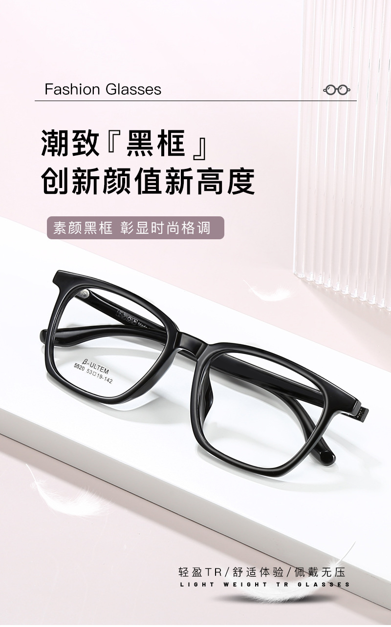 Ultra-ligero negro TR gran marco gafas marco simple belleza artefacto versátil adelgazamiento sin clip de la cara puede coincidir con la miopía Danyang al por mayor