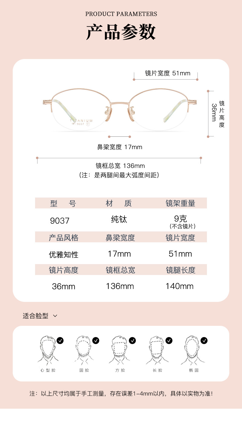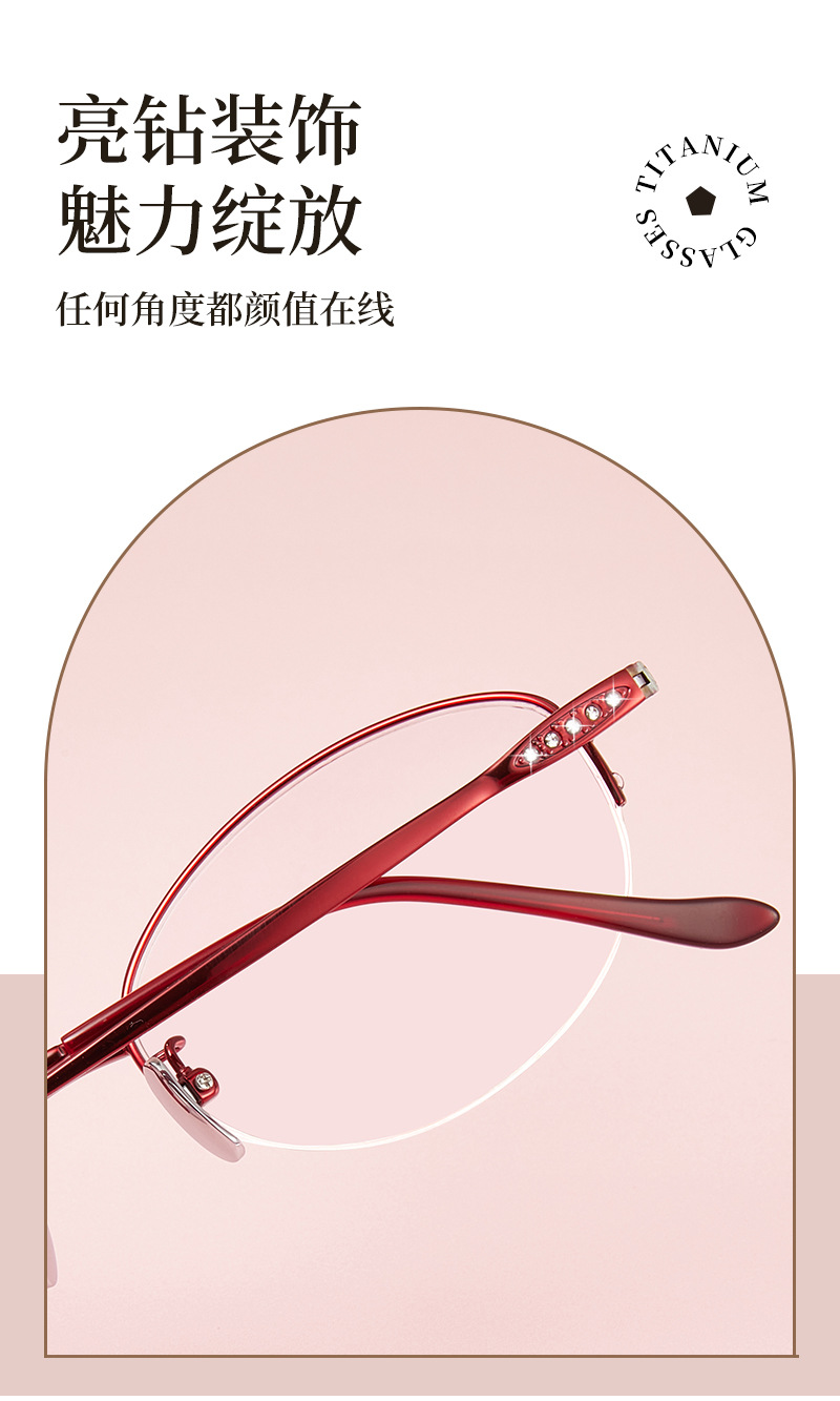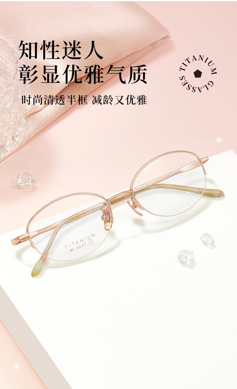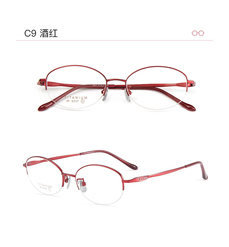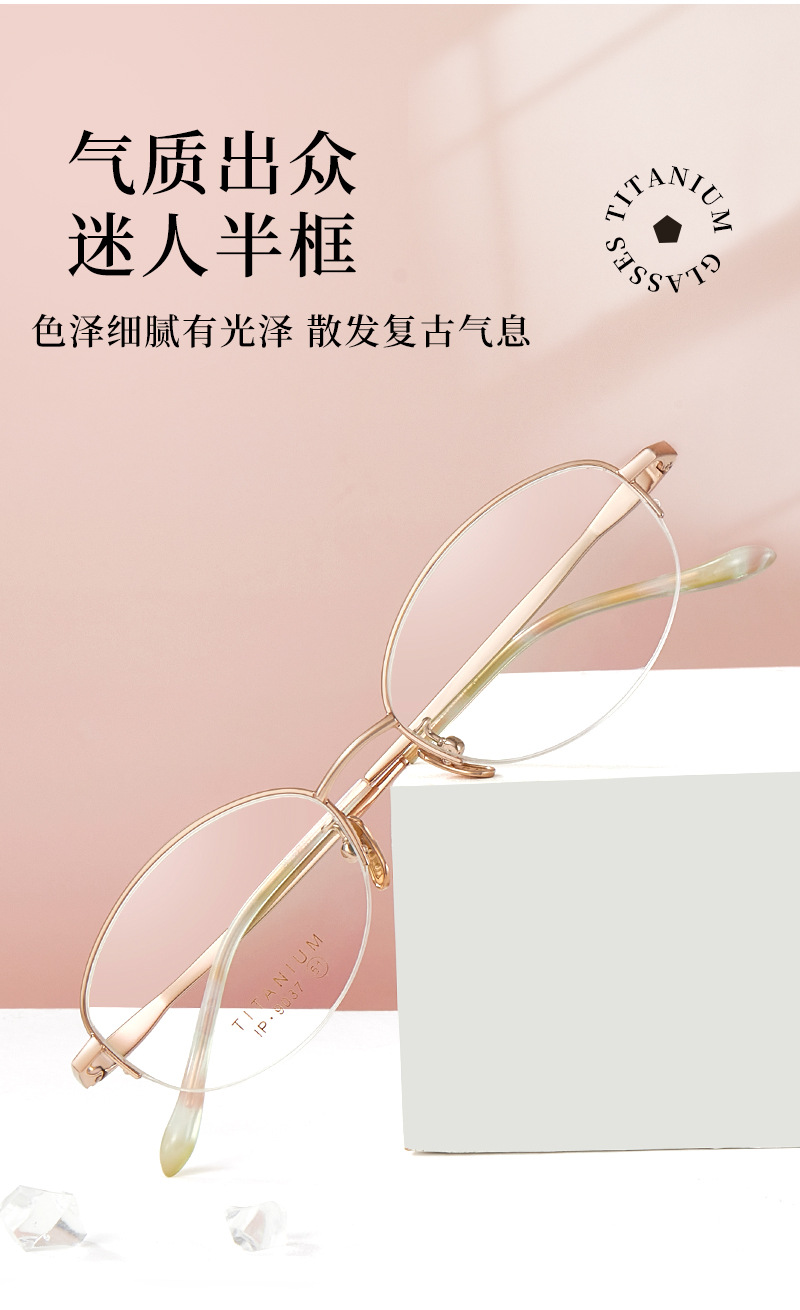 Moda elegante gafas de medio Marco de las mujeres de titanio puro marco adelgazamiento reductor de edad sin clip de cara puede coincidir con miopía Danyang lote