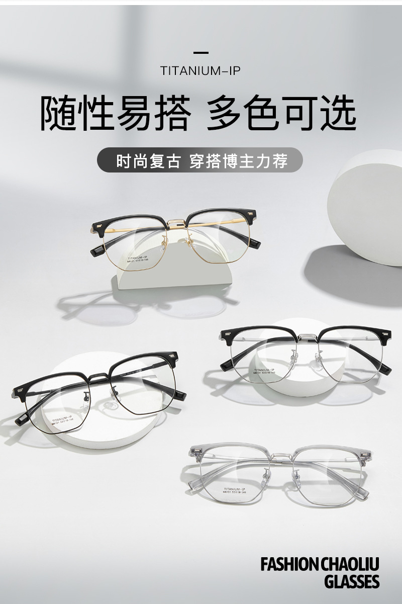 Claro moda de negocios casual ceja marco gafas de titanio puro Marco de las piernas de titanio flexible sin clip de la cara puede ser equipado con grados Danyang lote