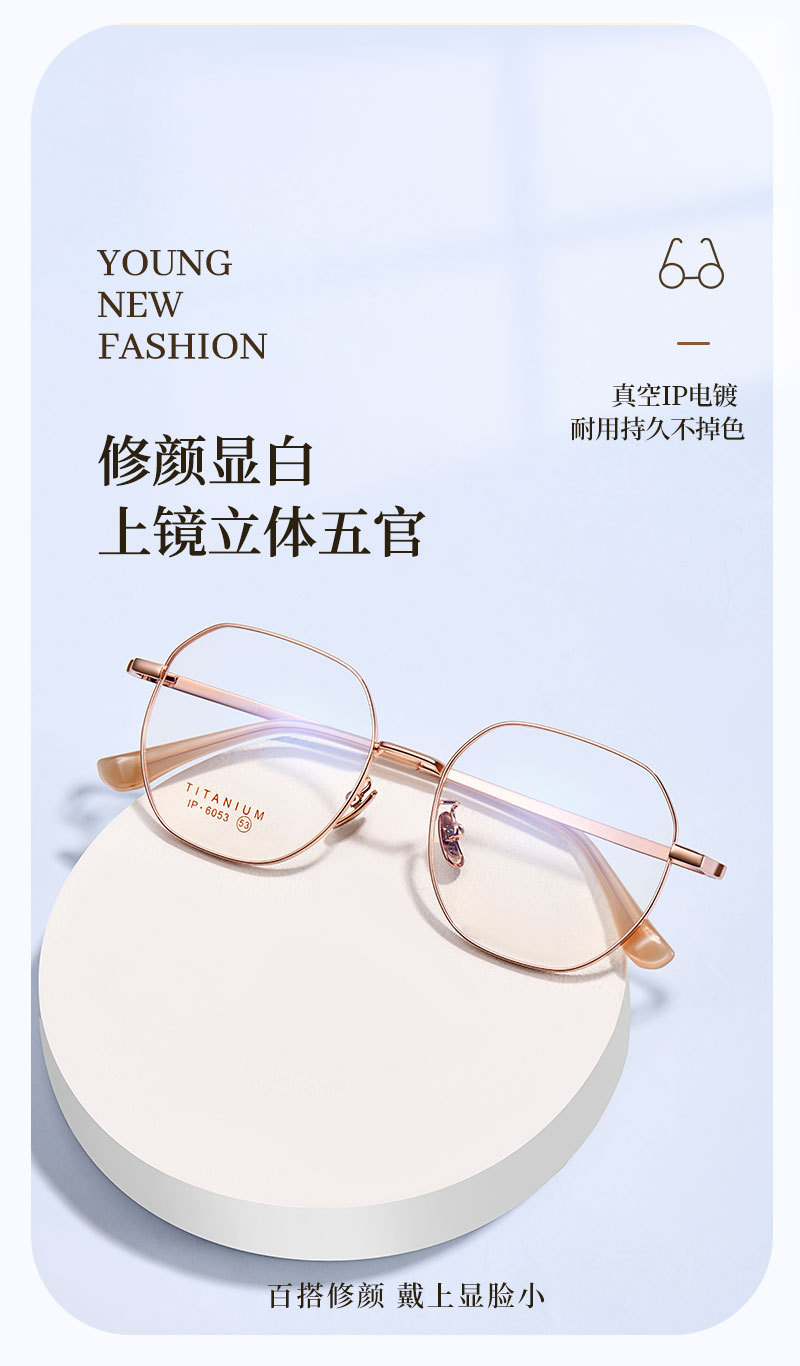 Alta calidad ligero retro multilateral puro titanio gafas marco blanco suave sin clip de cara puede coincidir con la miopía Danyang al por mayor