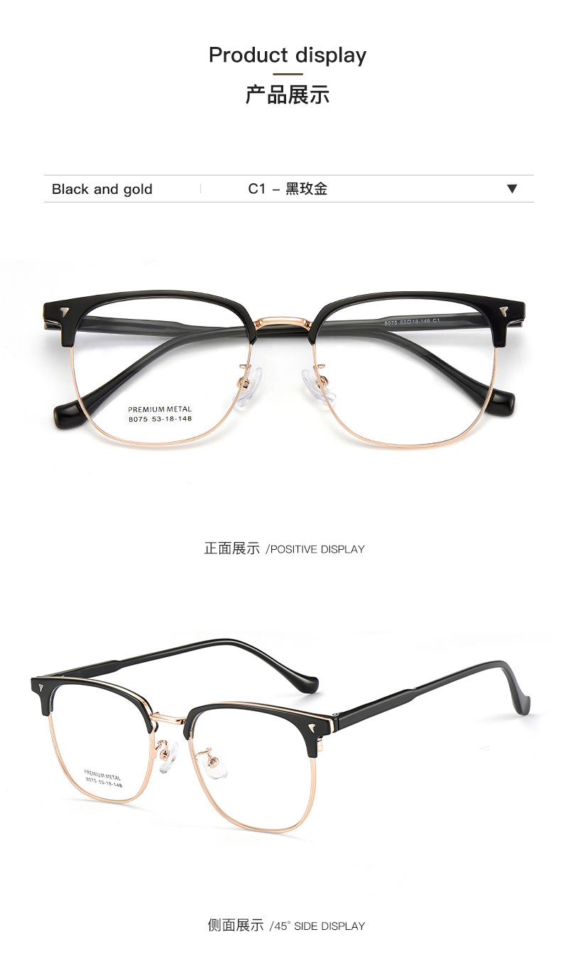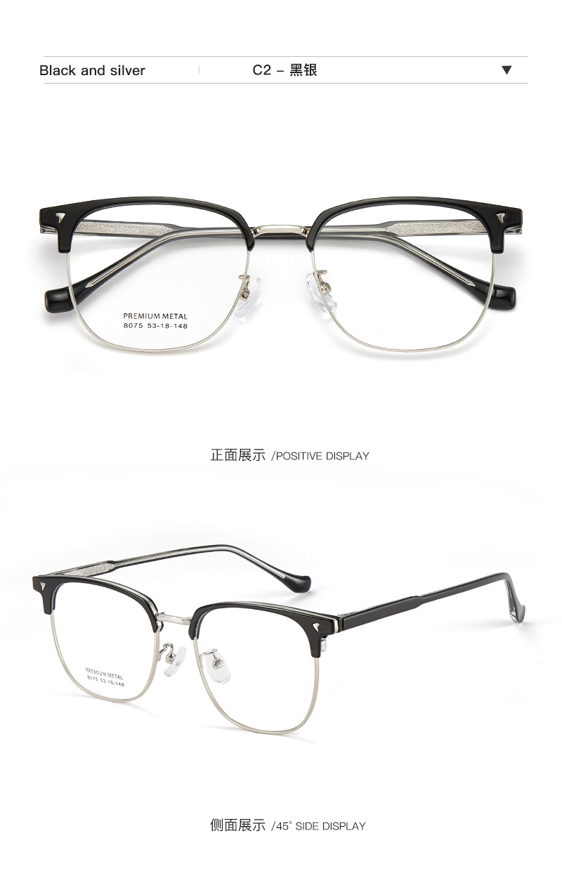 Negocios de ocio para hombres aleación de cejas marco de gafas de cristal antideslizante placa de inserción de piernas de núcleo puede coincidir con grados Danyang lote