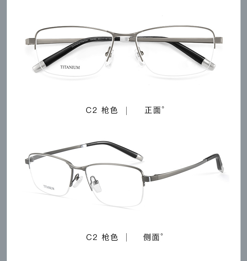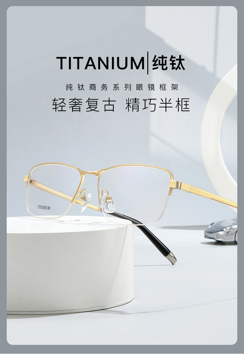 Negocios de alto nivel elegantes de medio marco para hombres de titanio puro marco de gafas superelásticas no sujetas a la cara puede coincidir con grados Danyang lote