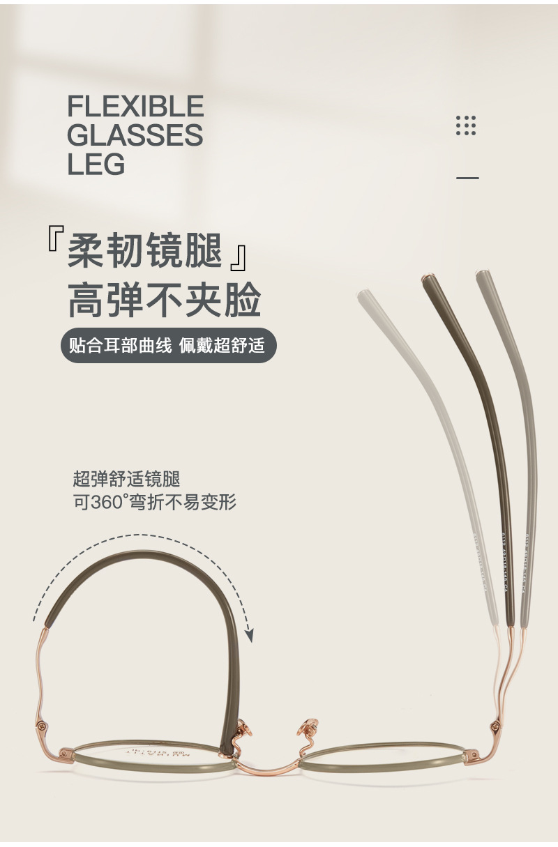 Romántico leche verde oscuro retrógrado marco de titanio marco de gafas de cara suave piernas de acoplamiento ensanchadas radian sin pellizco de cara Danyang lote de gafas