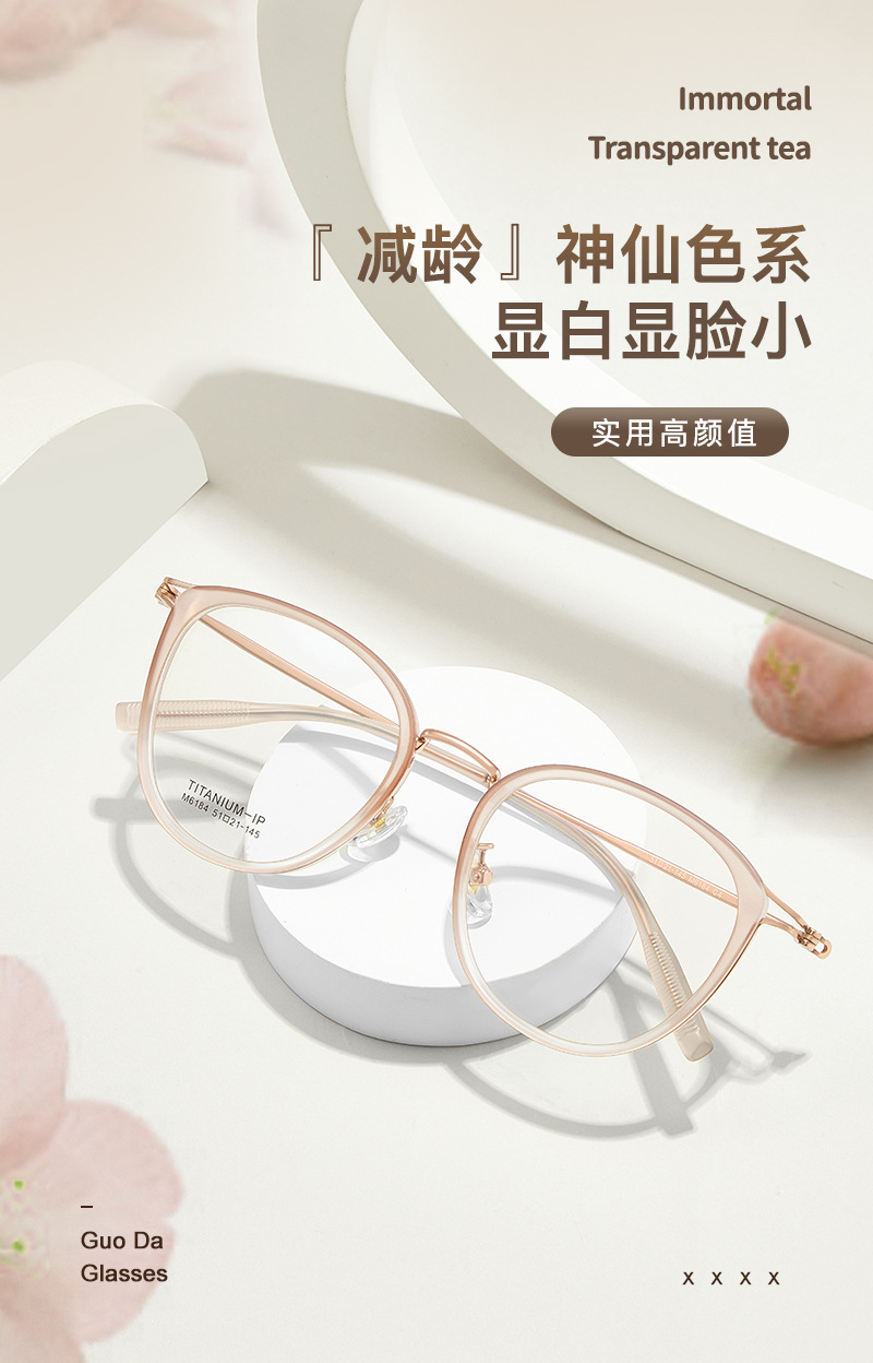 Yuanqi esmerilado flor de cerezo polvo simple TR marco de titanio marco de gafas de goma de oro hueco flexible IP pierna de titanio Danyang gafas al por mayor