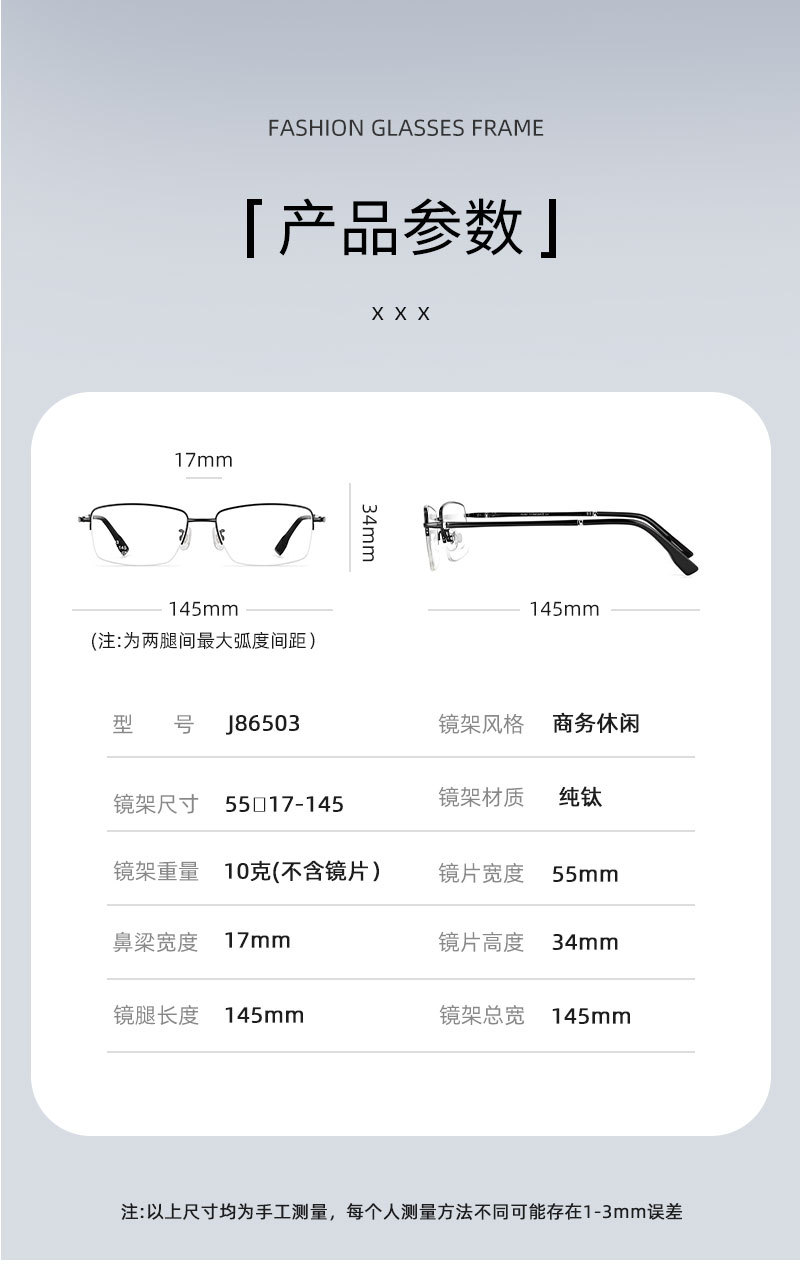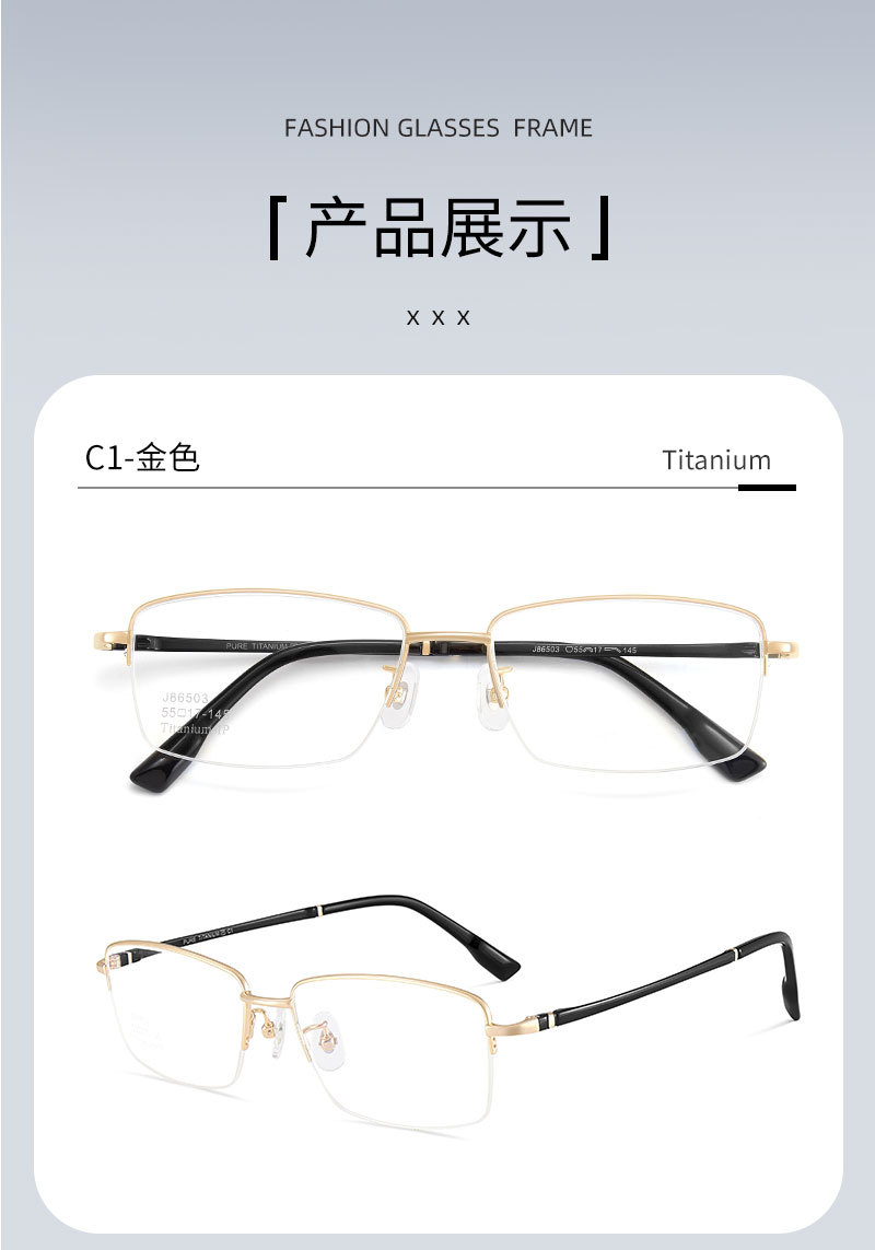 High-end lugar de trabajo para hombres de negocios de titanio puro medio marco de gafas de marco de titanio ultra suave piernas de titanio sin sujetar la cara puede coincidir con el número Danyang