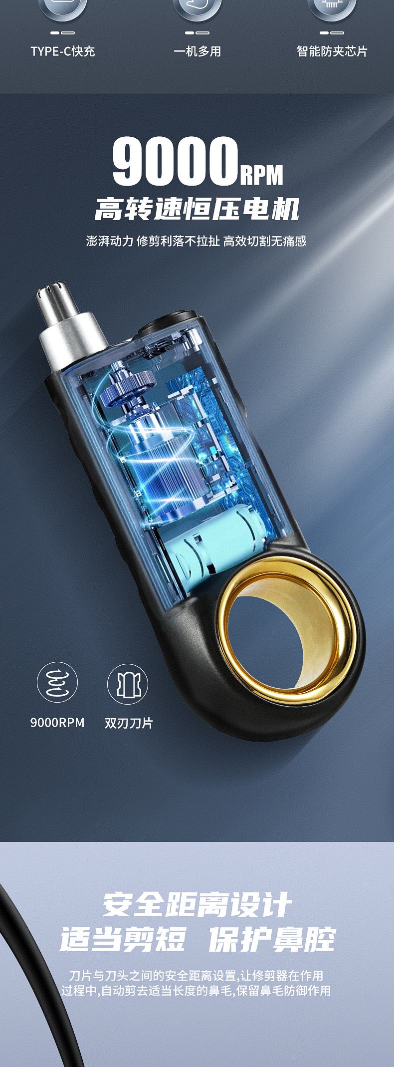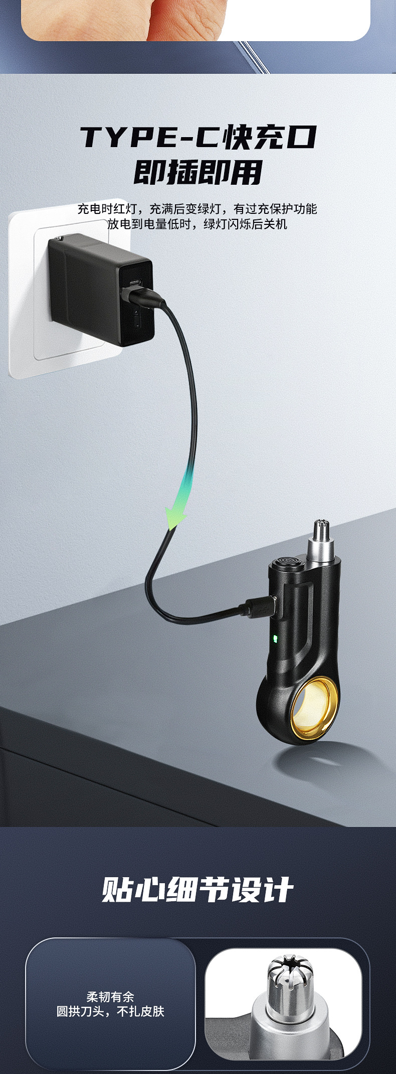 TEMU nuevo recortador de pelo nasal para hombres recargable USB reparación de pelo nasal para hombres y mujeres afeitador nasal