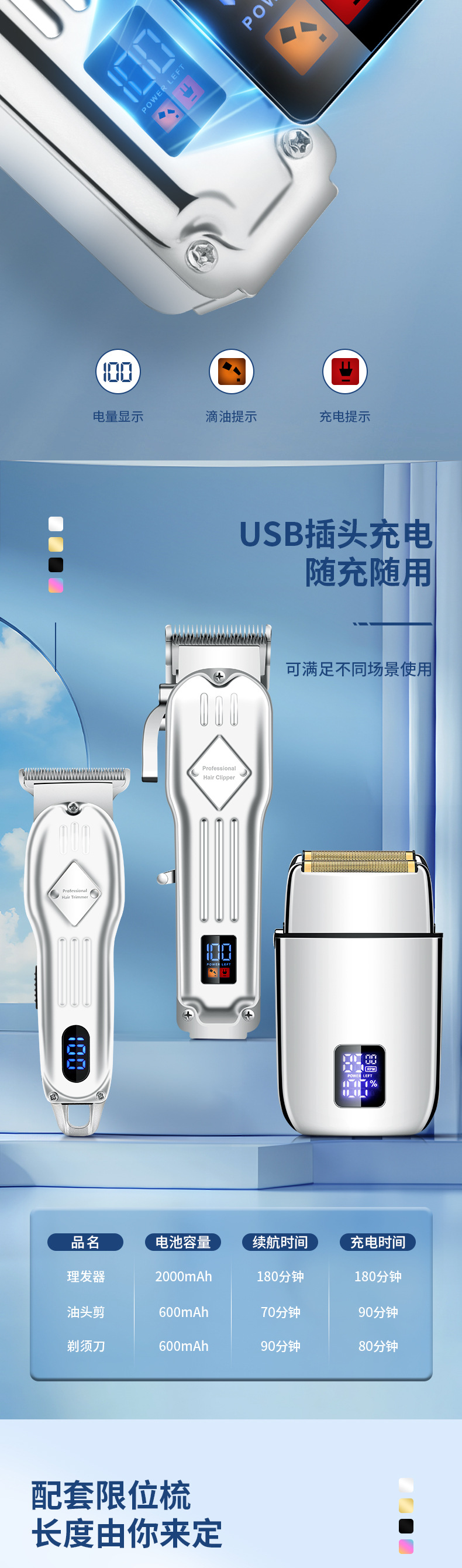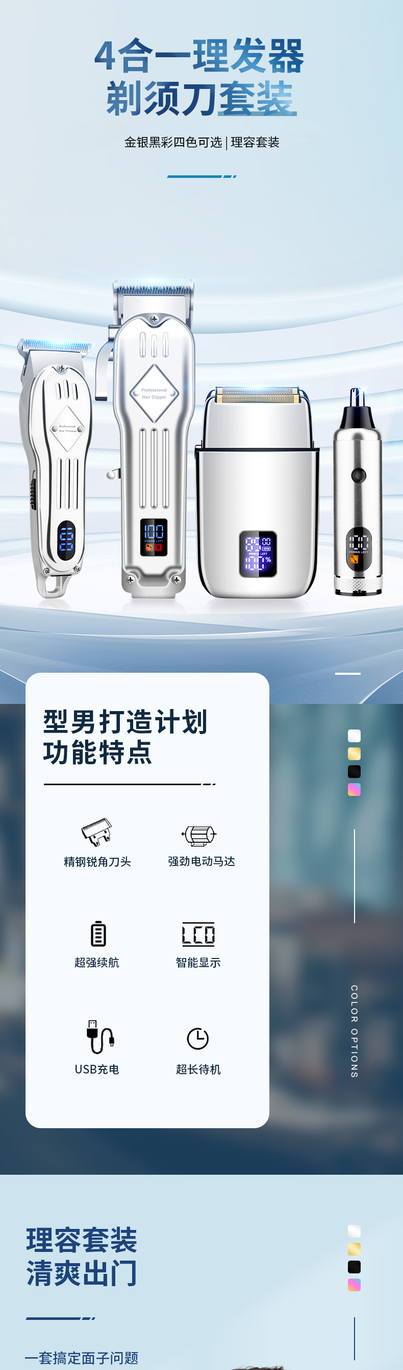 Cuatro piezas de corte de pelo eléctrico conjunto de tijeras eléctricas profesionales de metal para hombres afeitar eléctrico aparato de pelo nasal doméstico