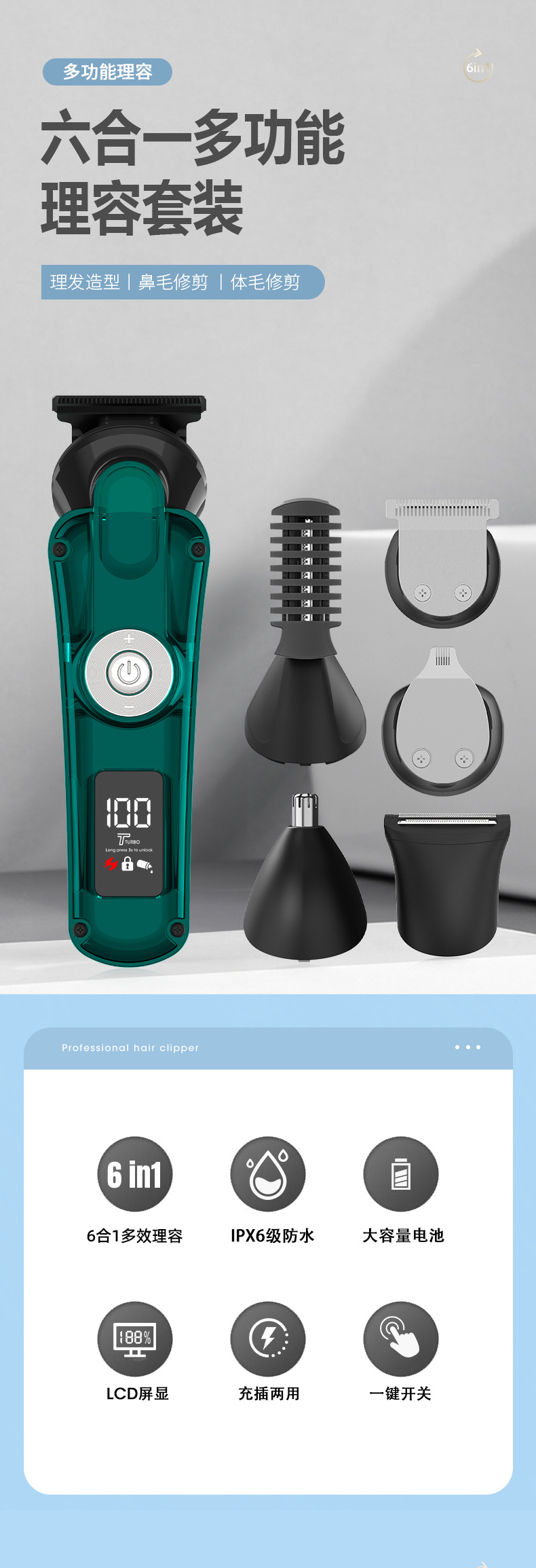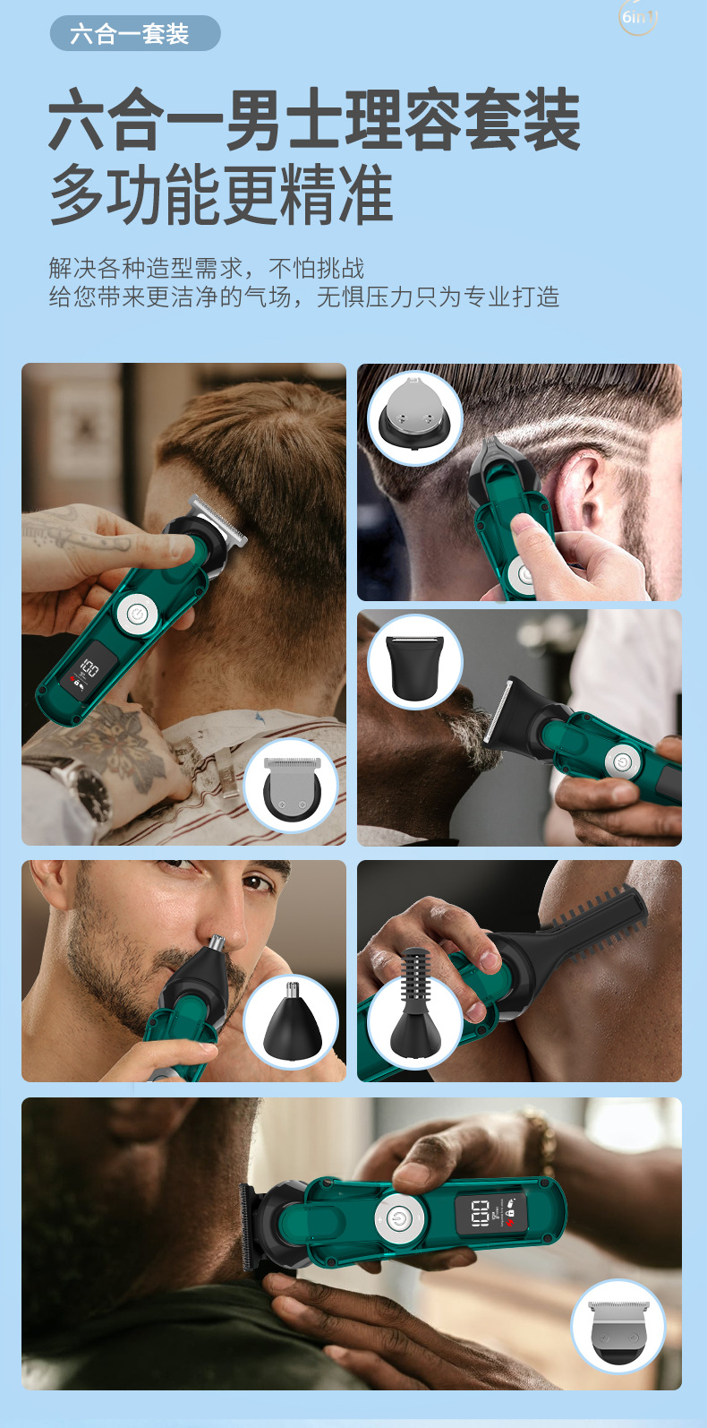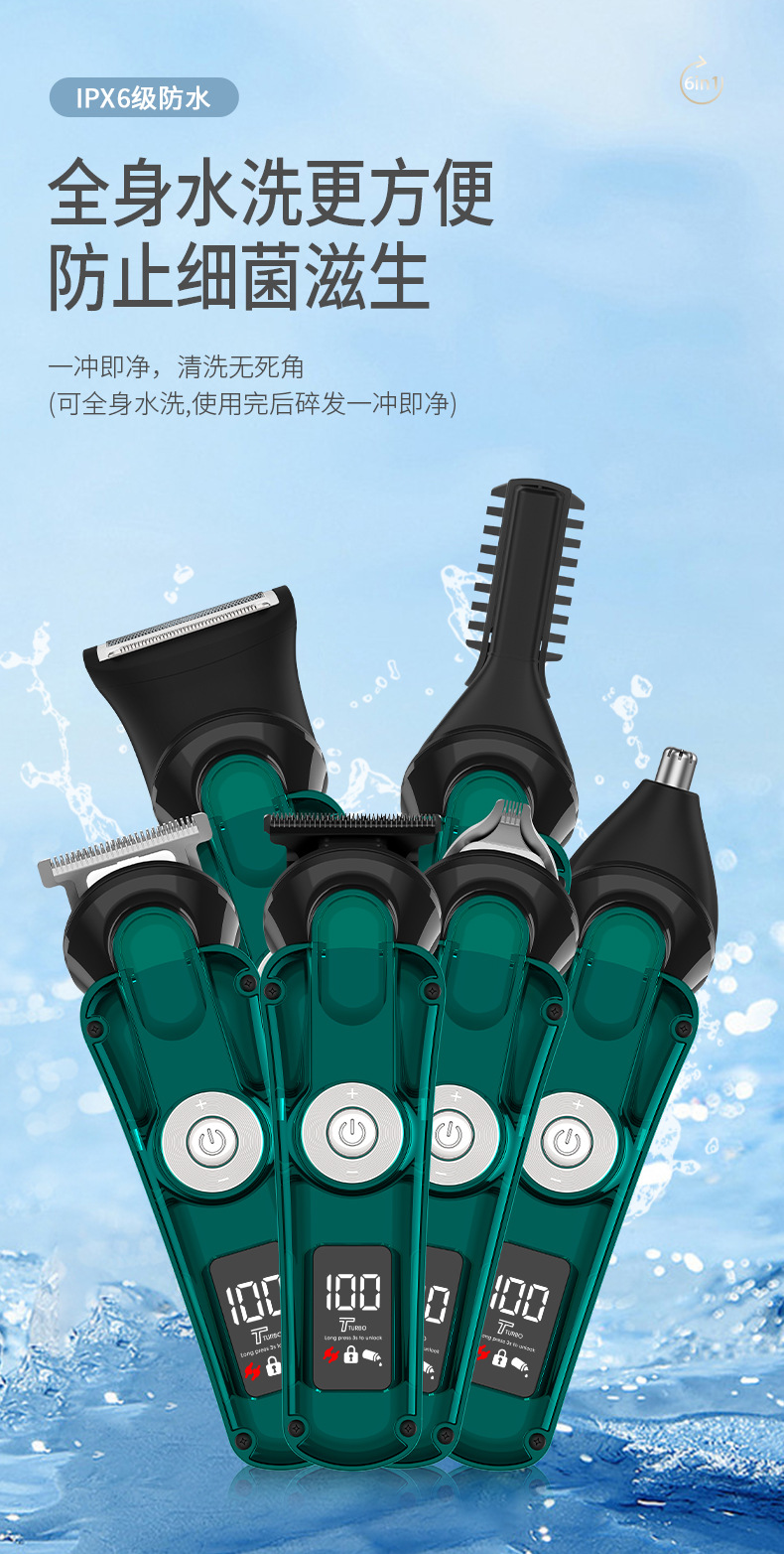 6 en 1 hombre multifuncional cortador de pelo eléctrico profesional casero recortador de pelo nasal máquina de afeitar conjunto de afeitar