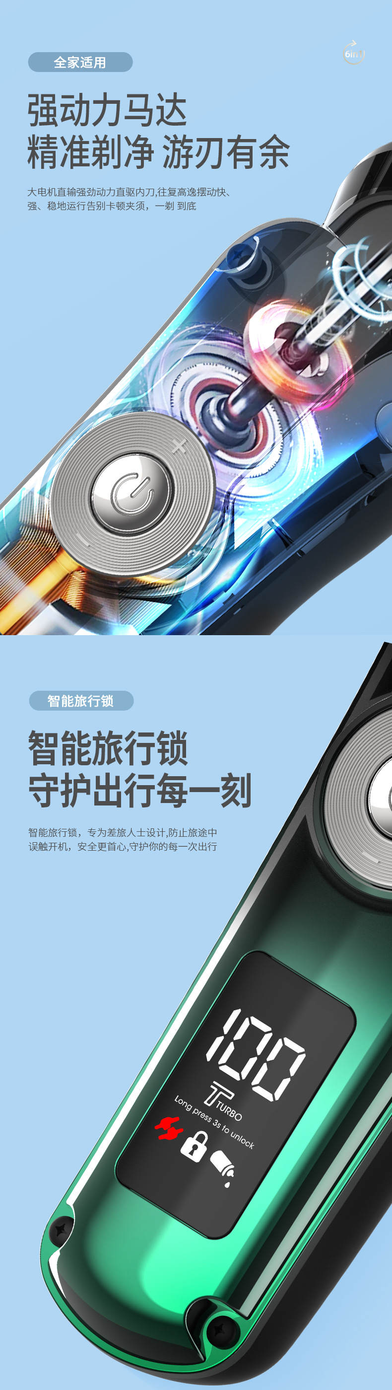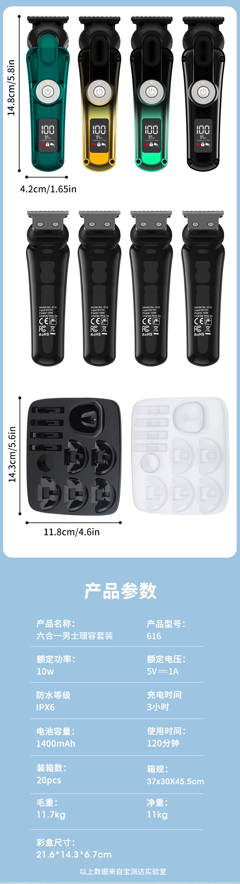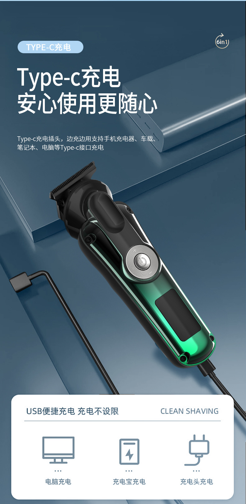 6 en 1 hombre multifuncional cortador de pelo eléctrico profesional casero recortador de pelo nasal máquina de afeitar conjunto de afeitar
