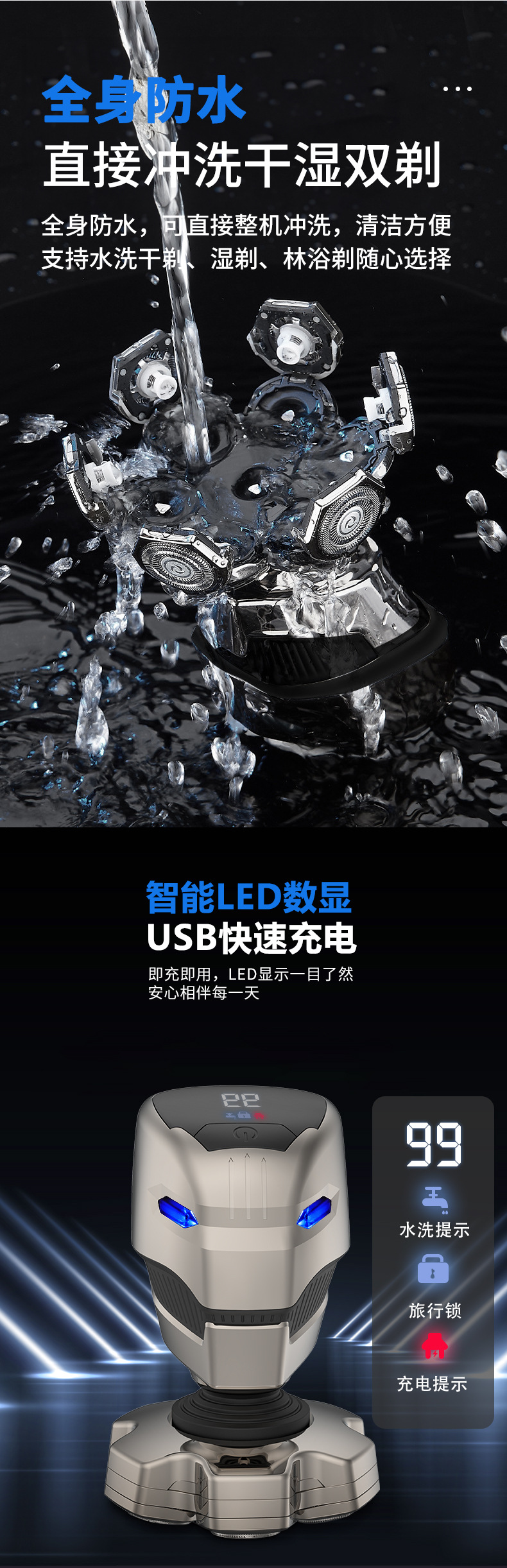 Multifuncional máquina de afeitar eléctrica de los hombres de succión magnética cuchillo cabeza de afeitar barba cuchillo de afeitar cabeza calva máquina cortadora de pelo