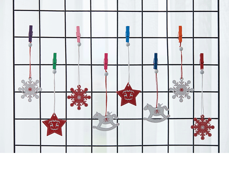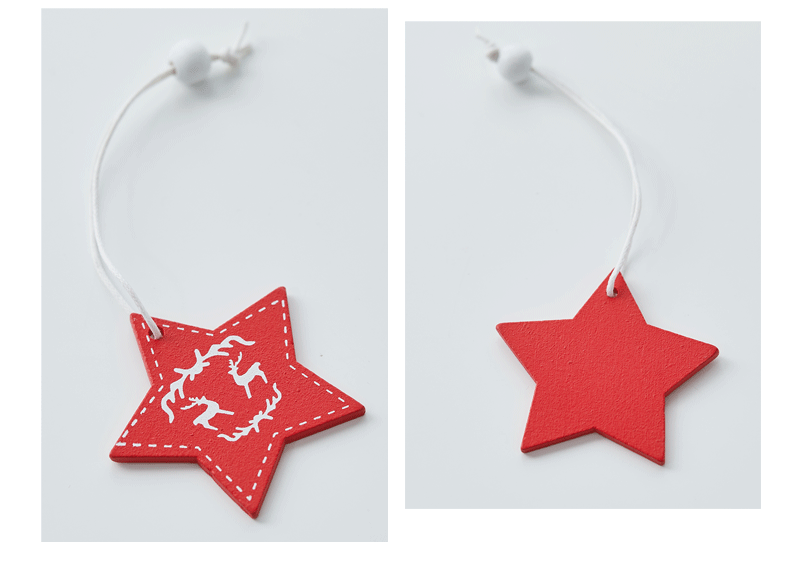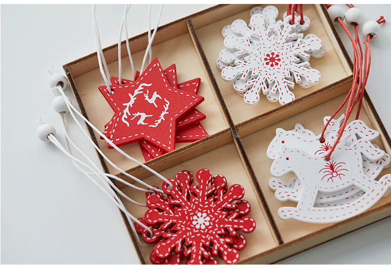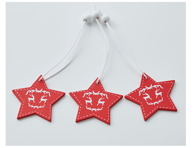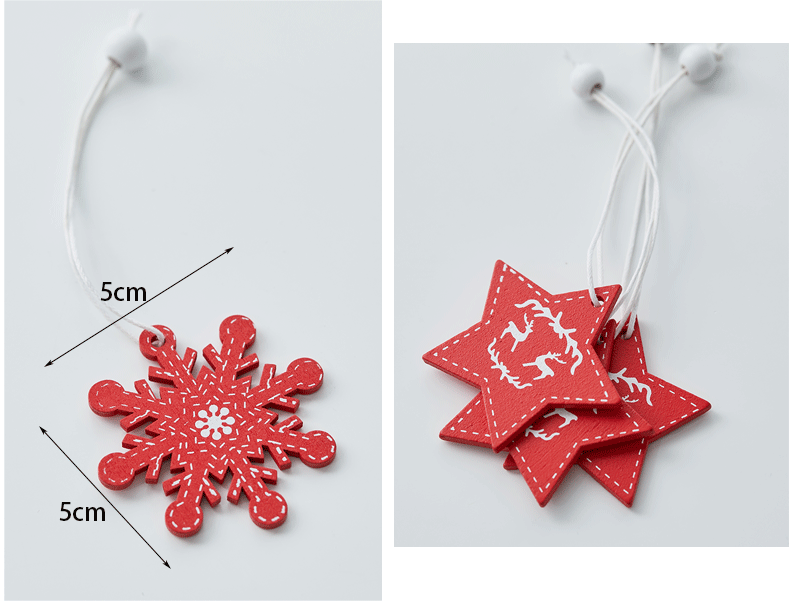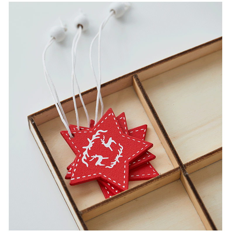 Colgante pequeño en caja de madera transfronteriza Árbol de Navidad Colgante rojo Navidad nórdica Copo de nieve Colgante de madera de alce de cinco estrellas