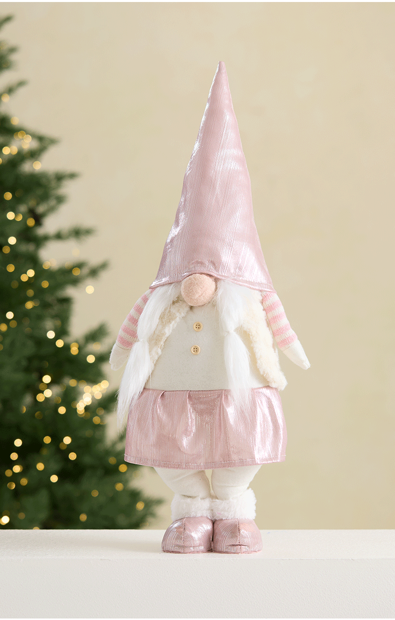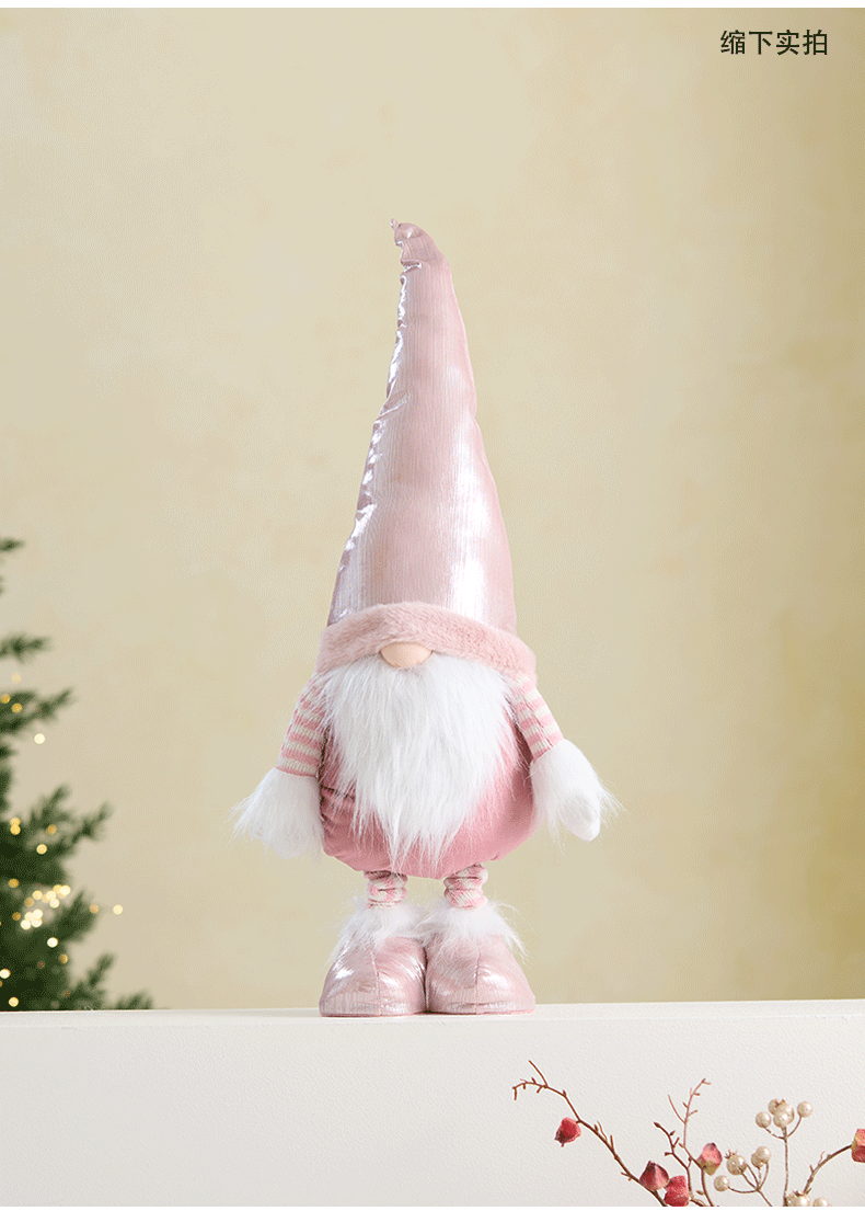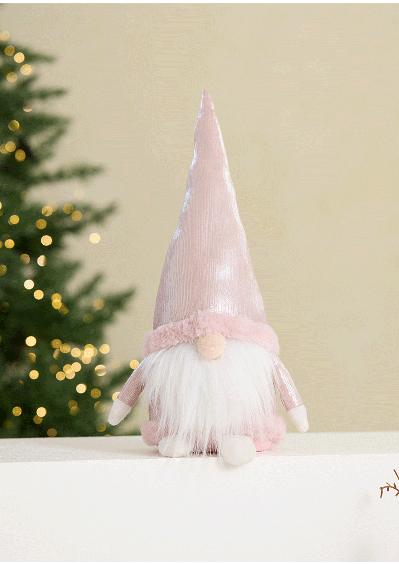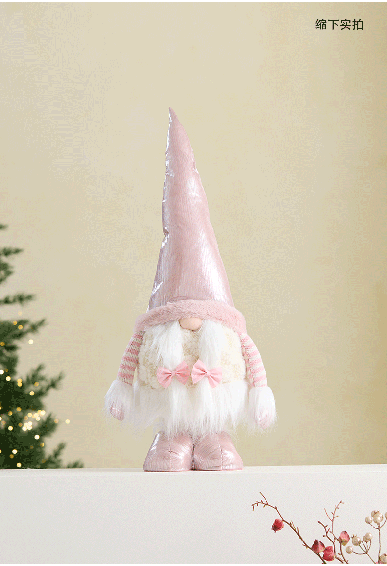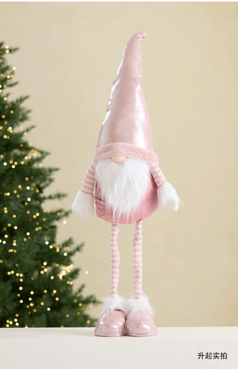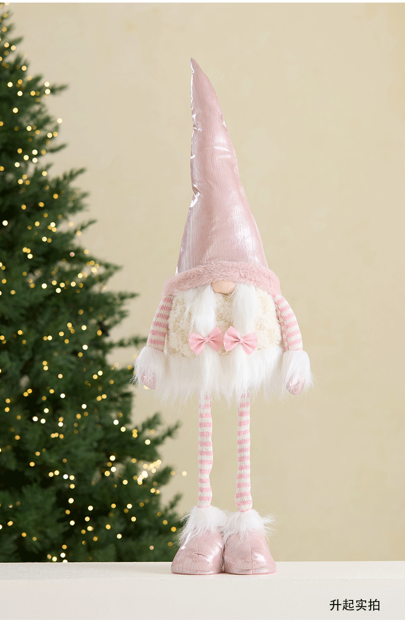 Ins rosa con luz Santa Claus muñeca retráctil muñeca sin rostro anciano duende decoración de la escena de la ventana accesorios