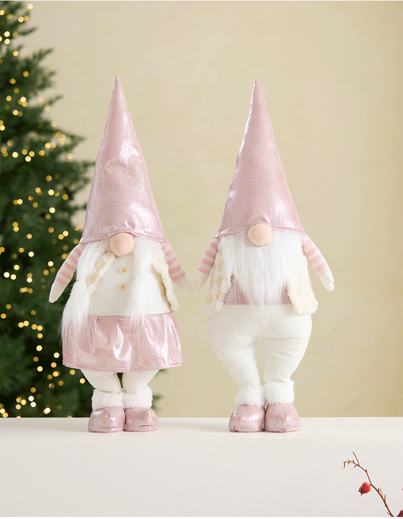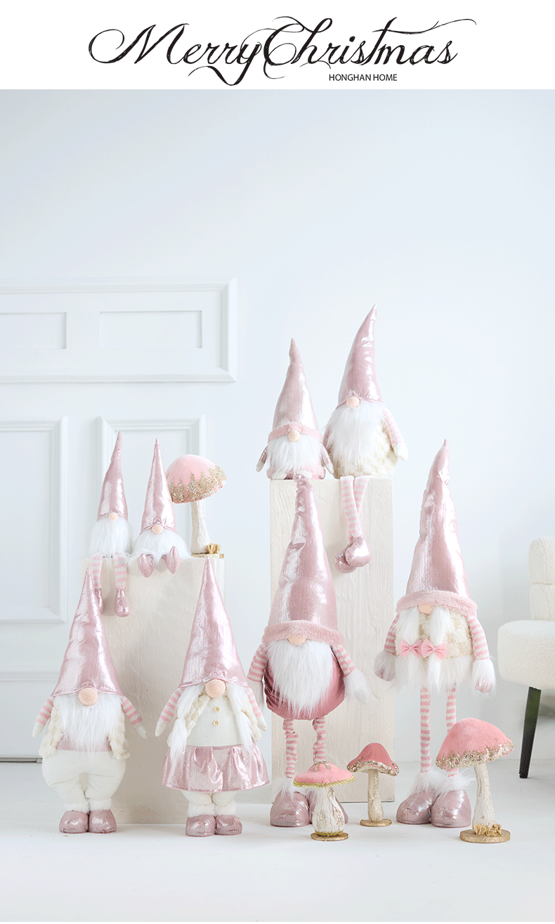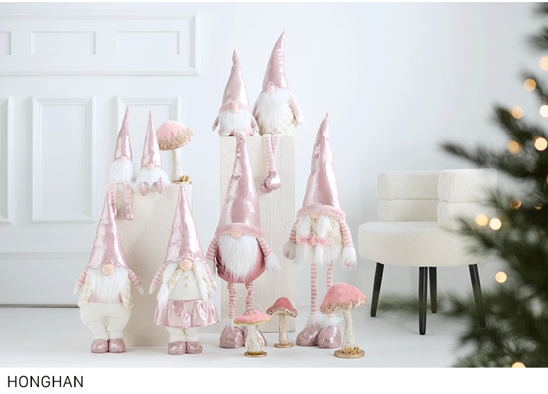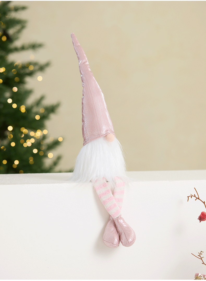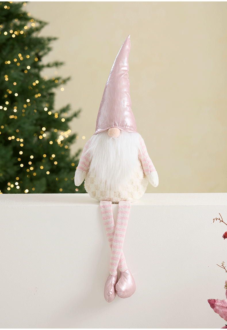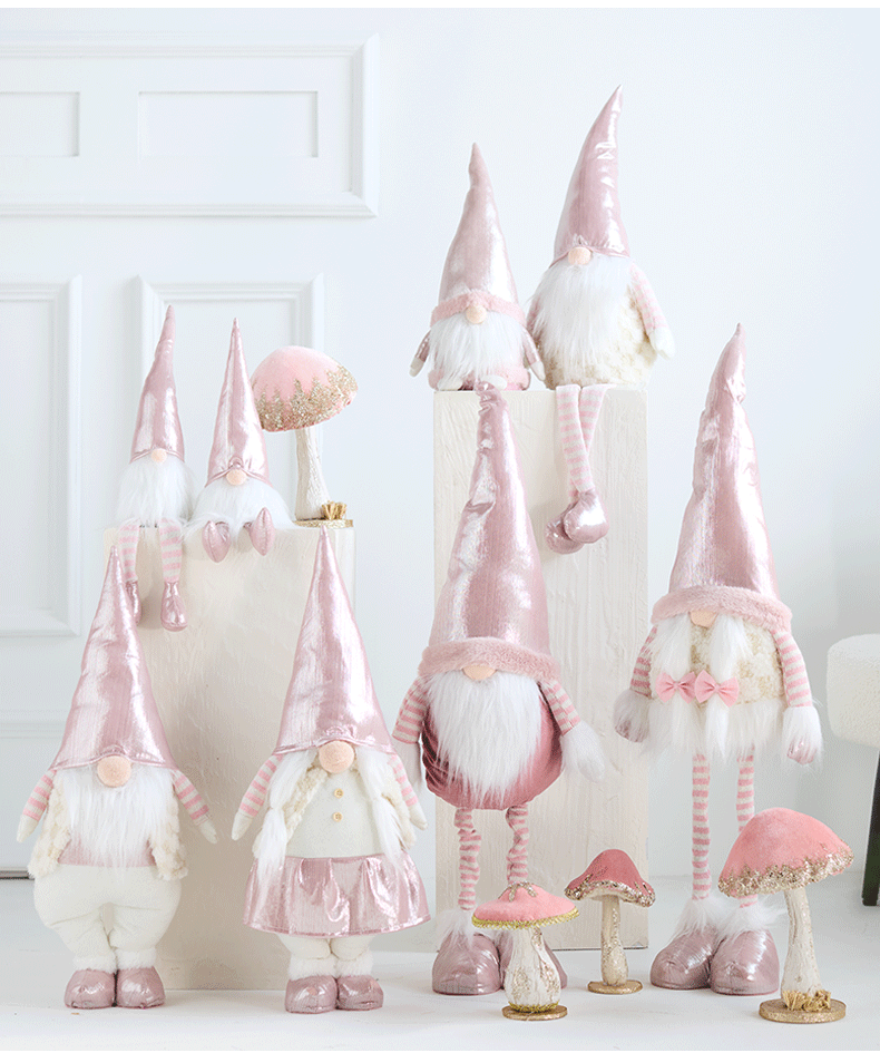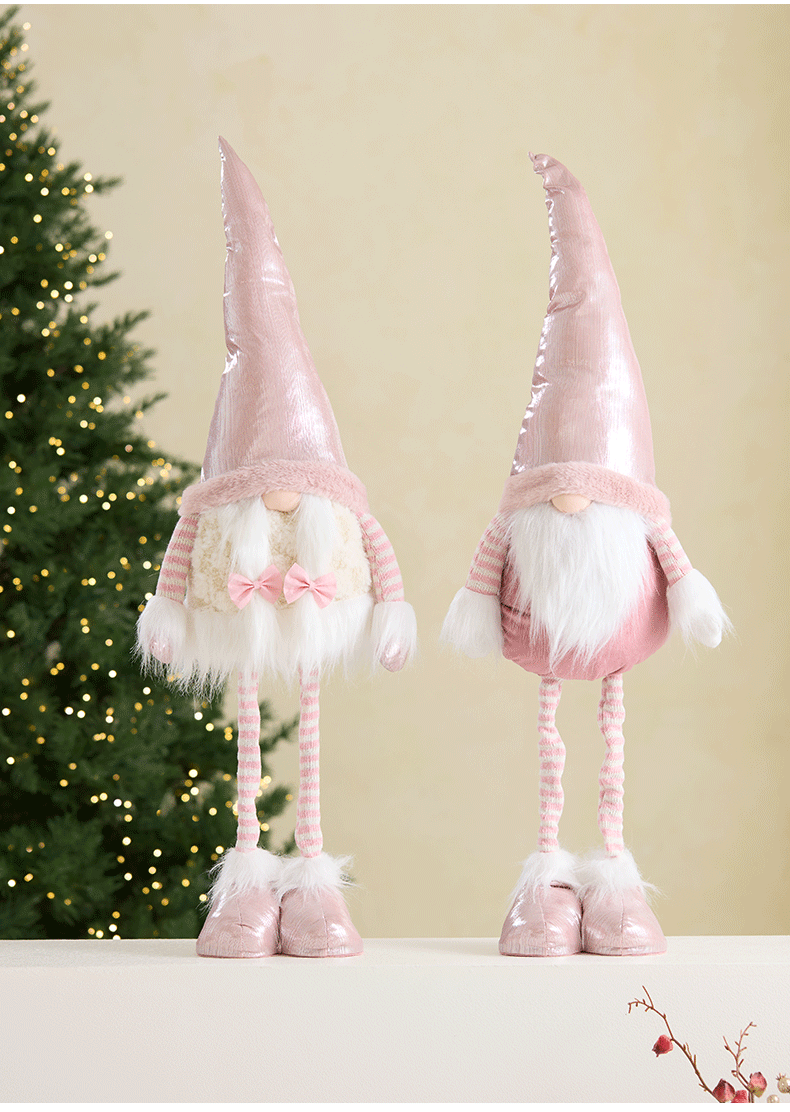Ins rosa con luz Santa Claus muñeca retráctil muñeca sin rostro anciano duende decoración de la escena de la ventana accesorios