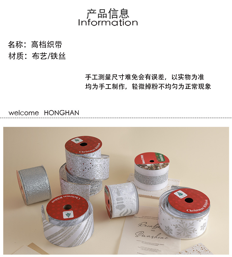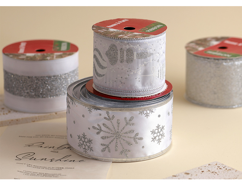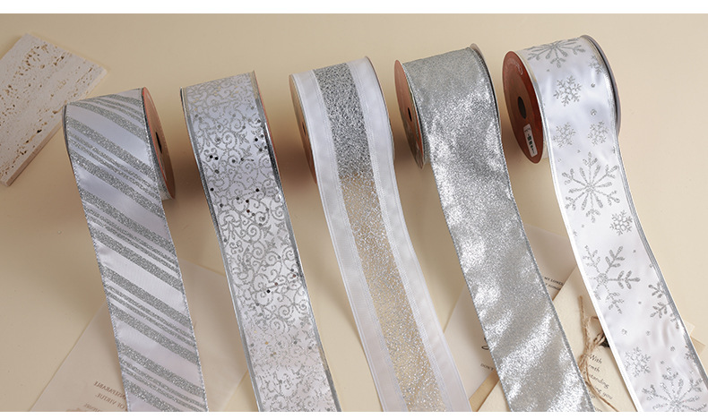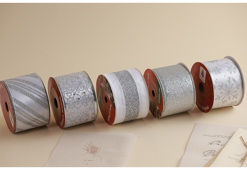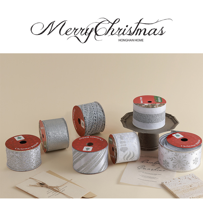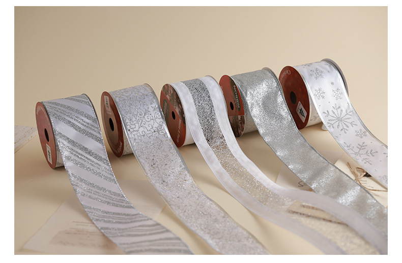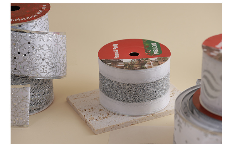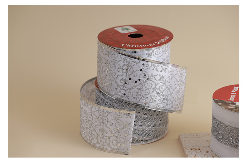 Transfronterizo nuevo estilo Navidad árbol de Navidad decoración cinta ins de malla plateada de alta calidad cinta de cinta diy lazo