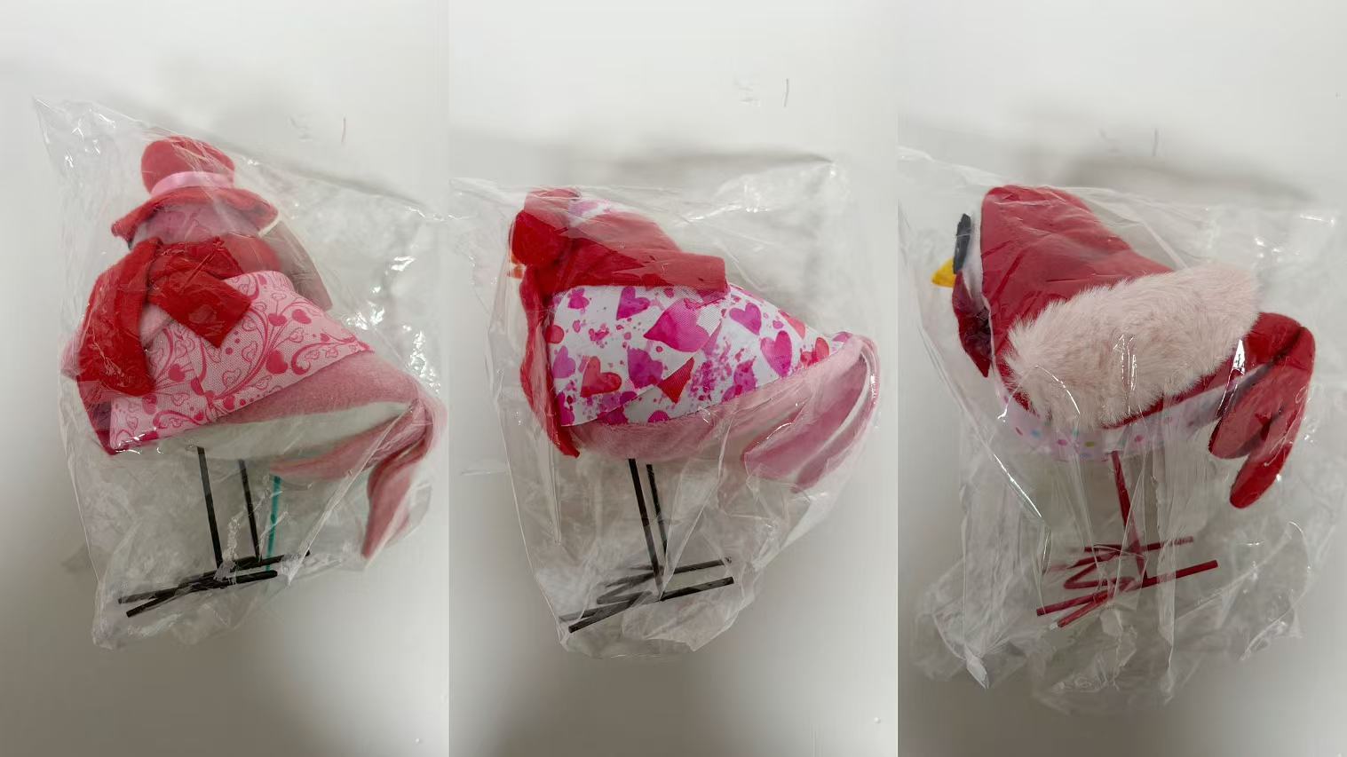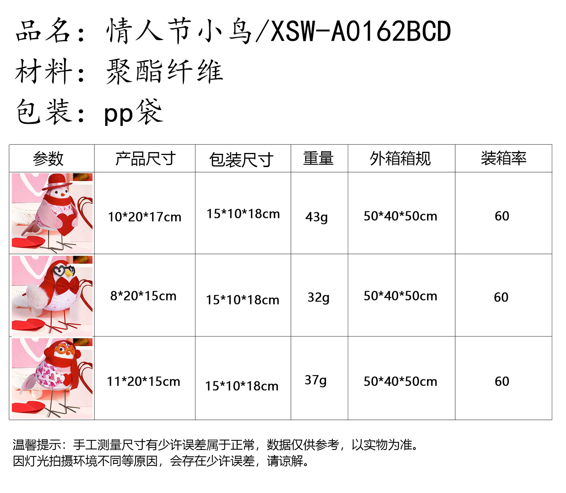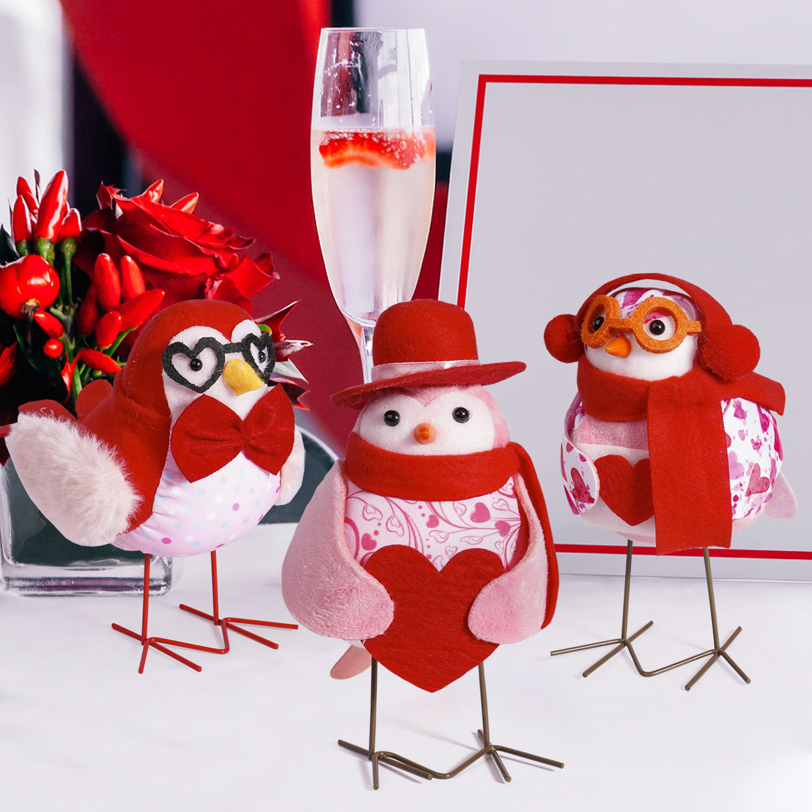 Nuevos productos transfronterizos Día de San Valentín amor pájaros lindos muñecos gafas bufandas sombreros amor adornos decoraciones