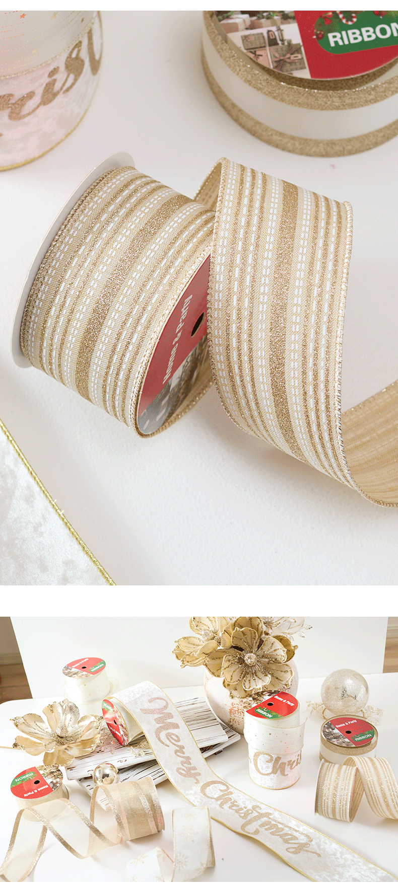 Cross-border nuevo color champagne de alta calidad tela de lana italiana cinta de navidad merrychristmas cinta de arco