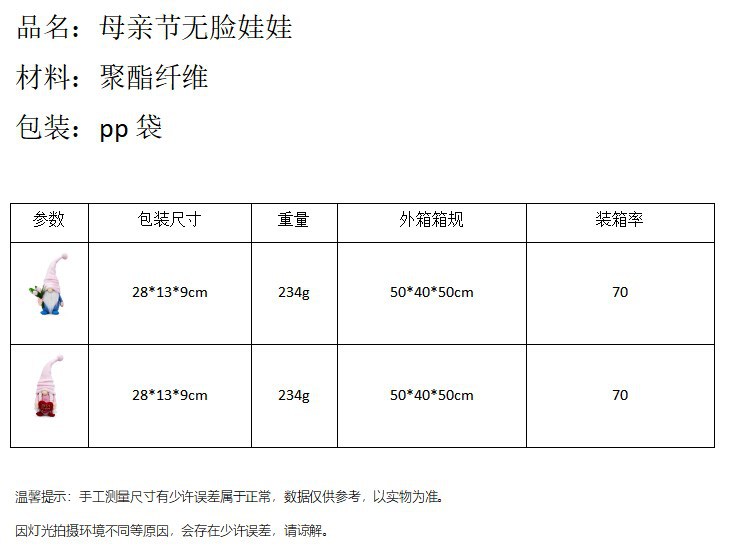 Nuevos productos transfronterizos Día de la Madre muñeca sin cara tulipán amor enano primavera duende Rudolph decoraciones de vacaciones