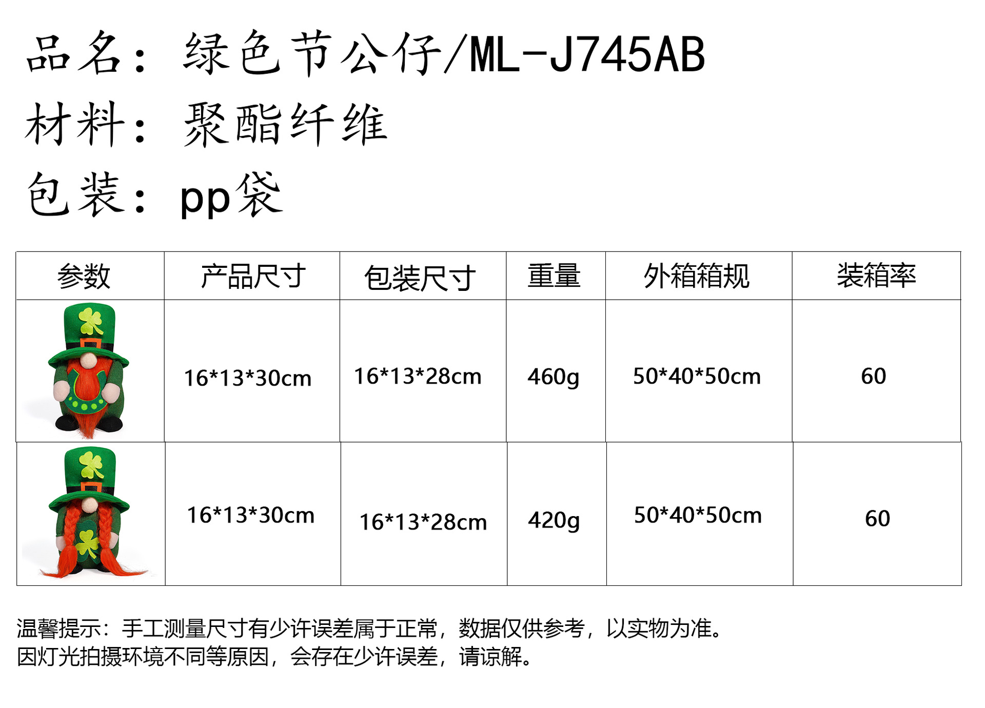 Muñecas irlandesas transfronterizas del día de San Patricio muñecas de hojas verdes Rudolph ornamentos regalos navideños
