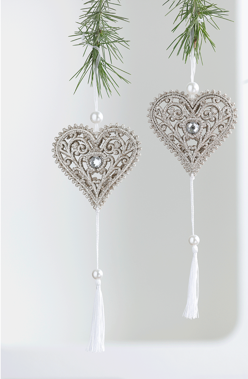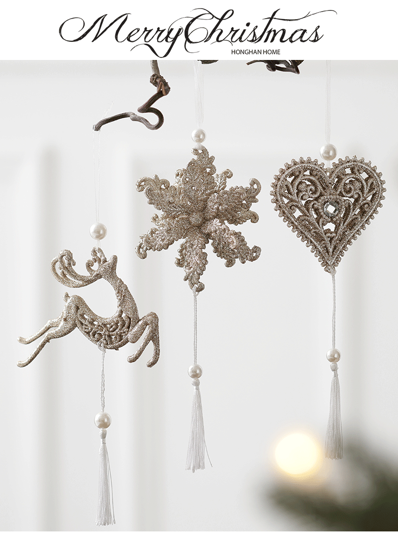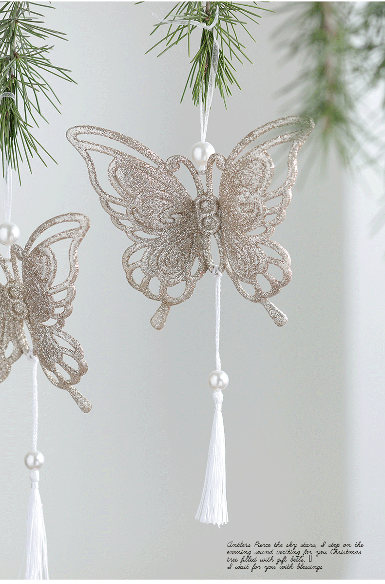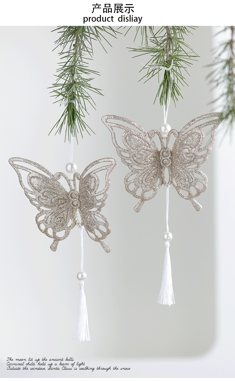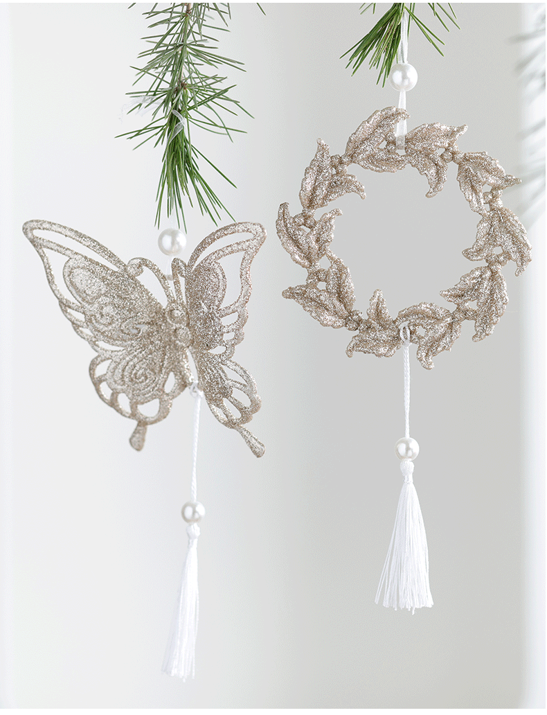 Nuevos productos transfronterizos de madera decoraciones de árboles de Navidad polvo brillante hueco flocos de nieve amor colgante mariposa colgante de Navidad