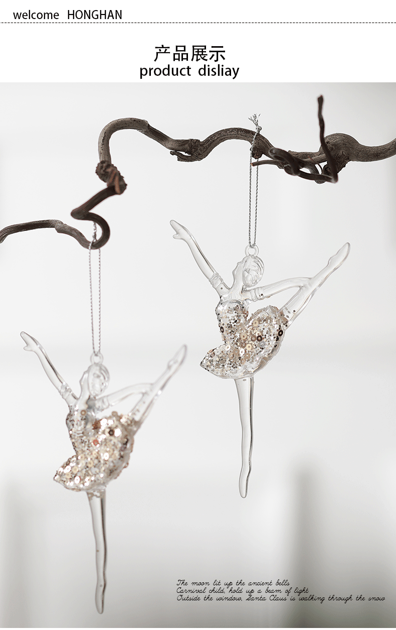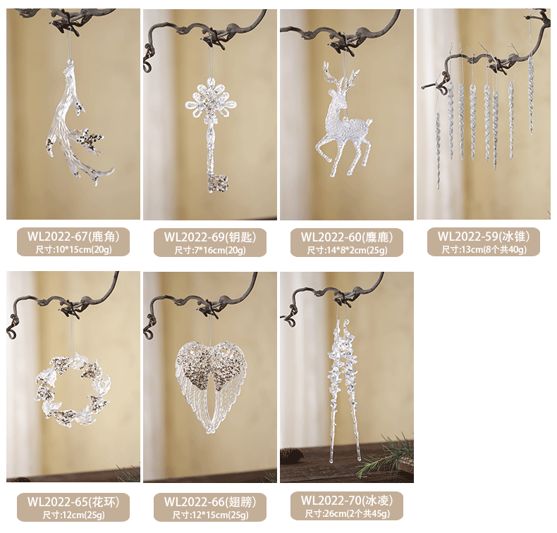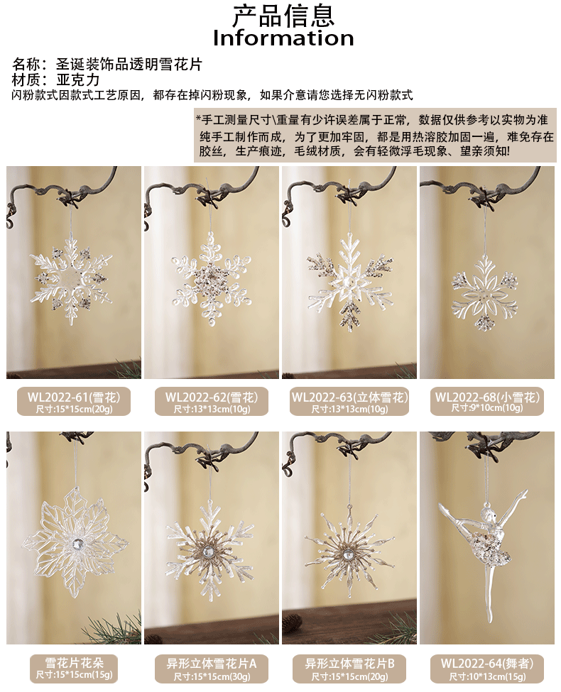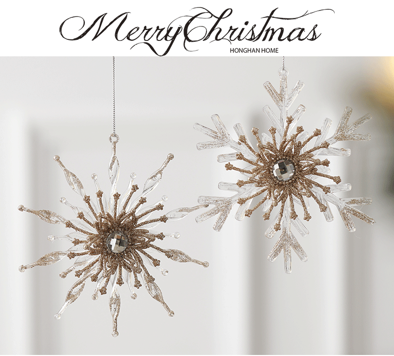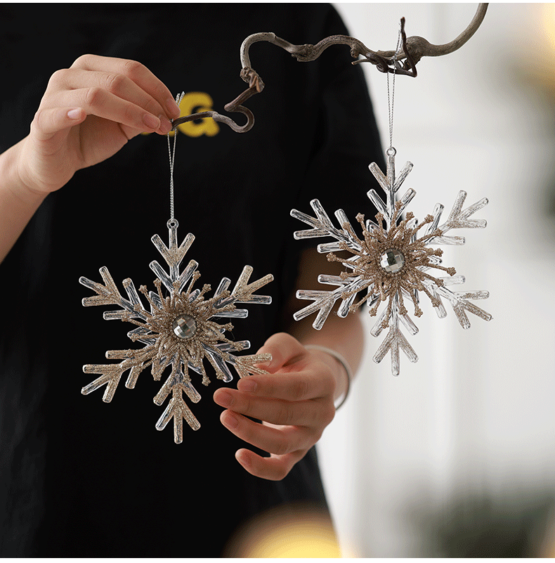 Nuevos productos transfronterizos transparentes copo de nieve acrílico decoraciones de árbol de Navidad guirnaldas bolsas de regalo colgante diseño accesorios colgante