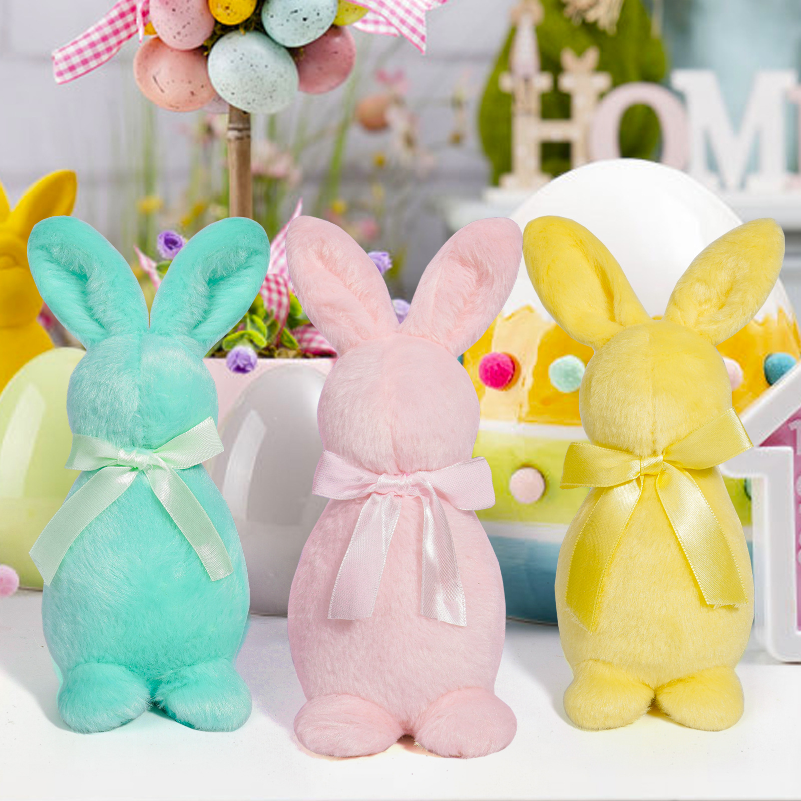 Nuevos productos transfronterizos de conejo de Pascua muñeca de peluche arco amarillo rosa azul adornos de regalo adornos de decoración