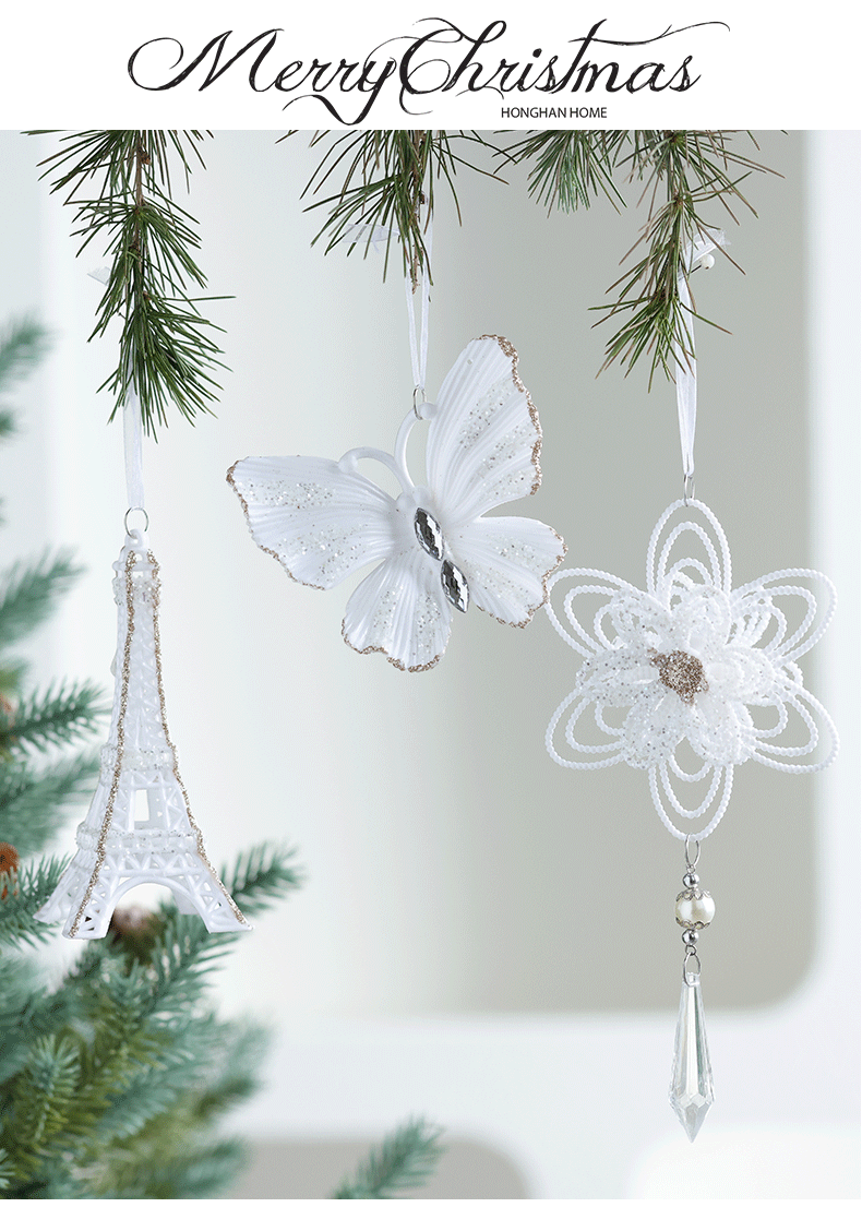 Buscando madera producto transfronterizo nuevo caramelo blanco de Navidad copo de nieve torre mariposa colgante de acrílico colgante de acrílico colgante de acrílico