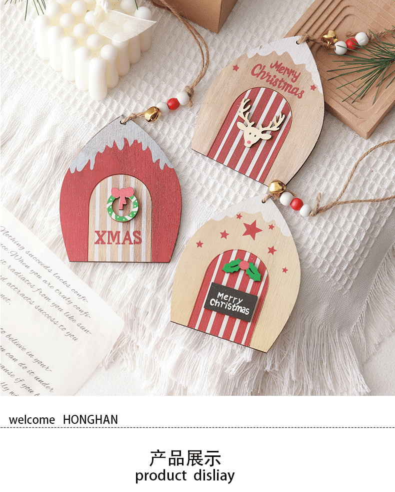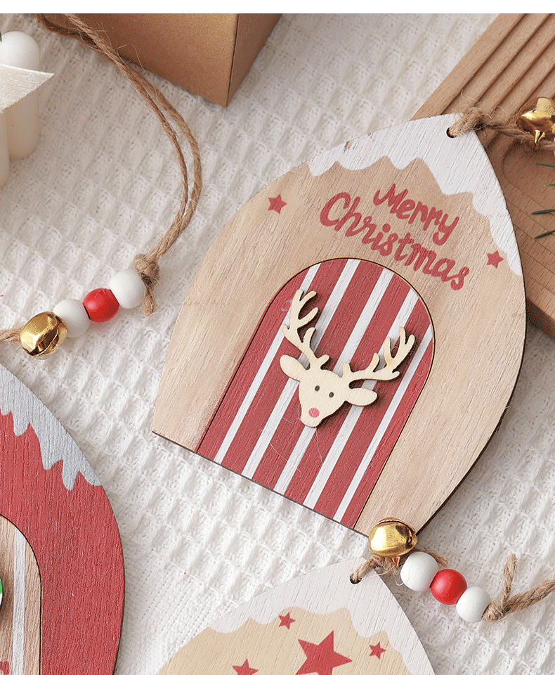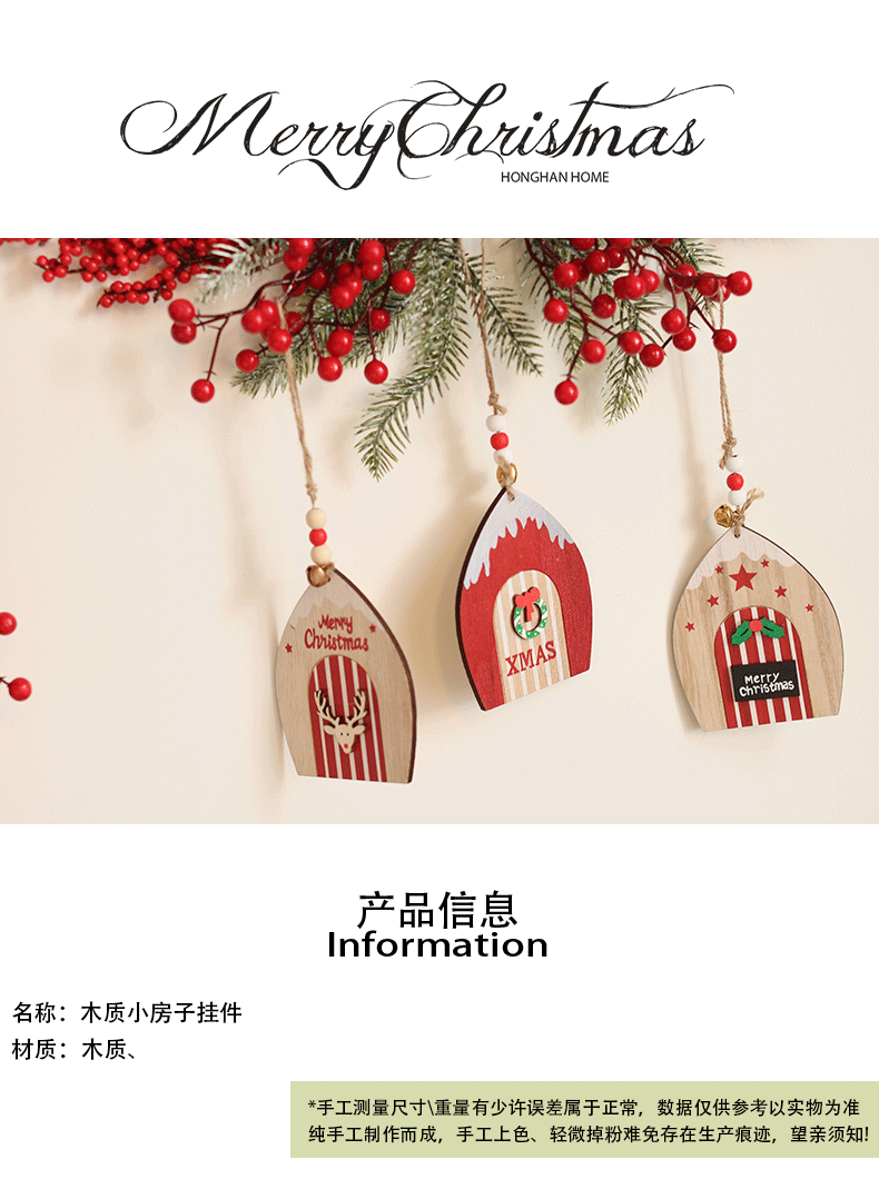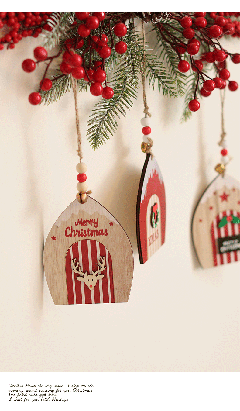 Decoraciones navideñas de madera colgante de madera exportado en el norte de Europa pequeña casa colgante guirlandas de alce