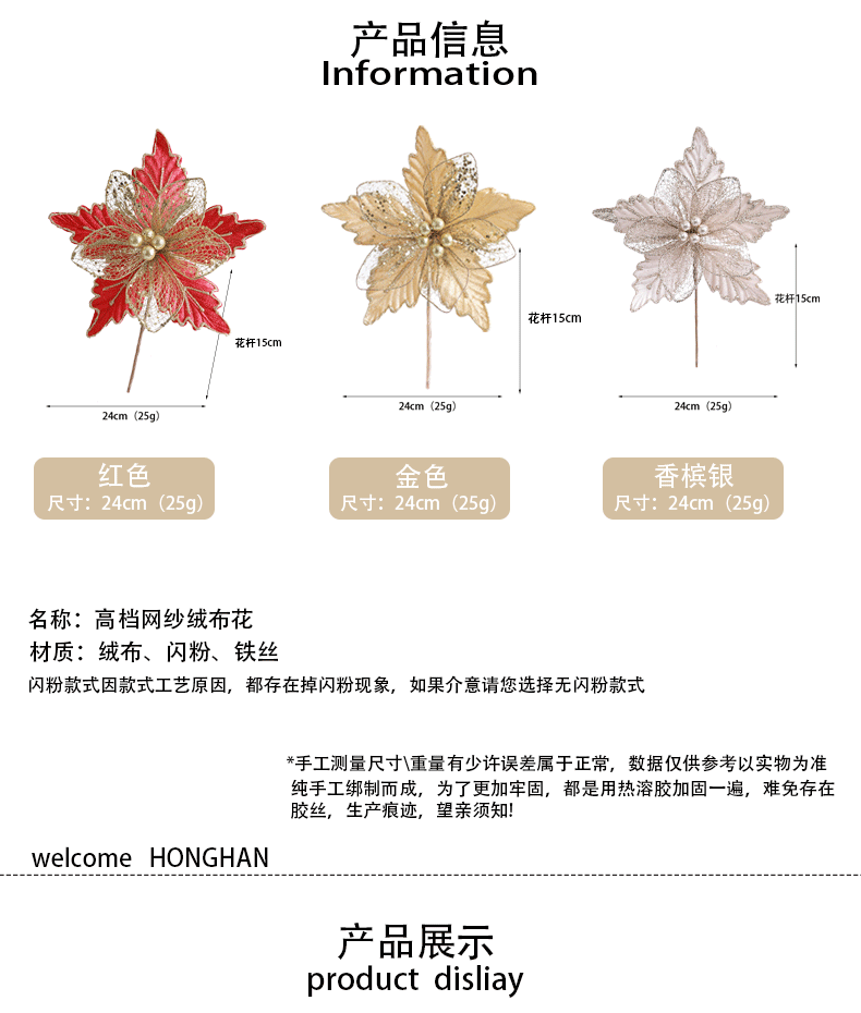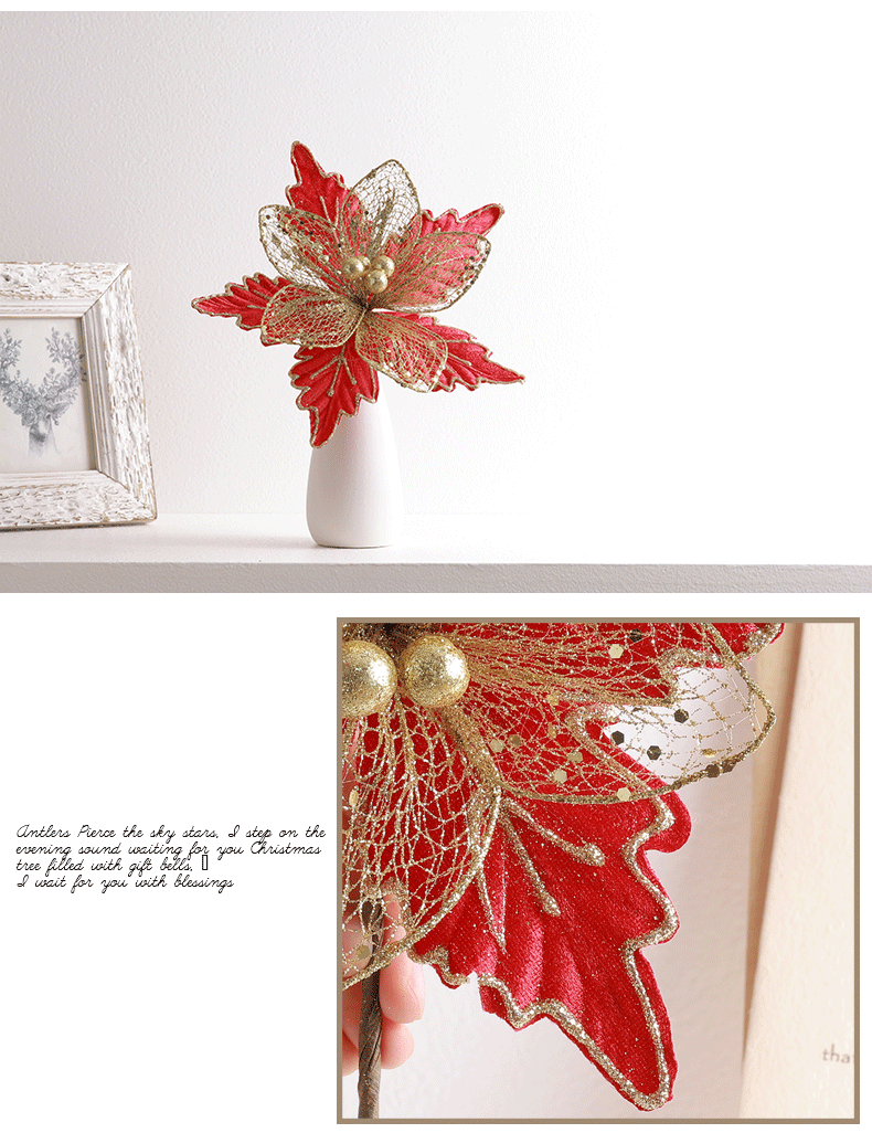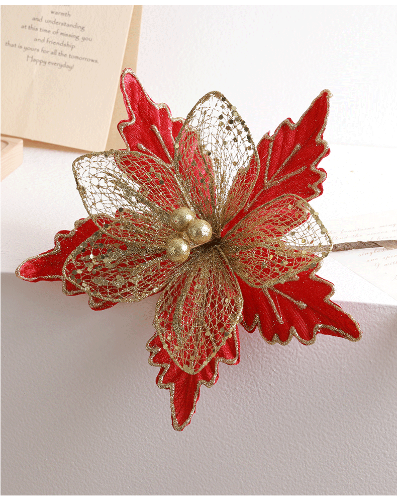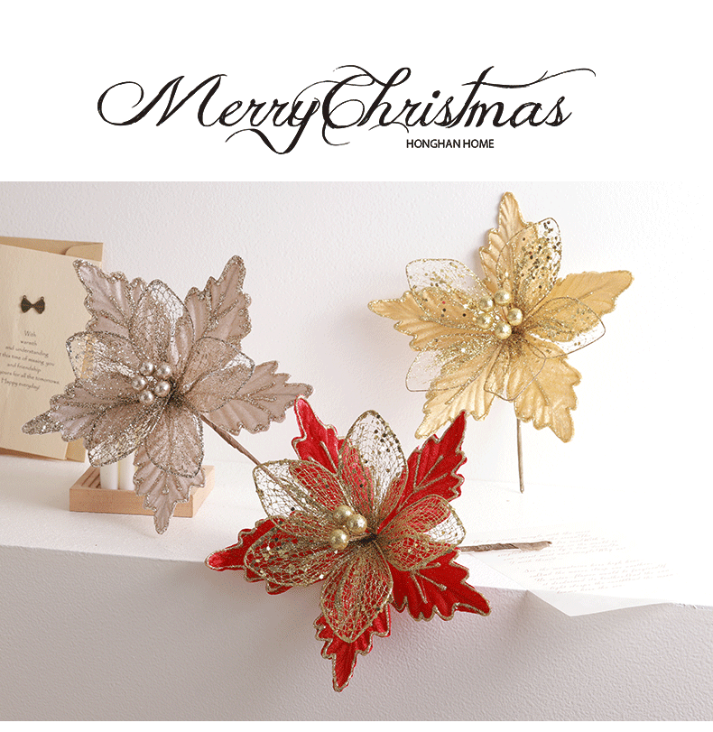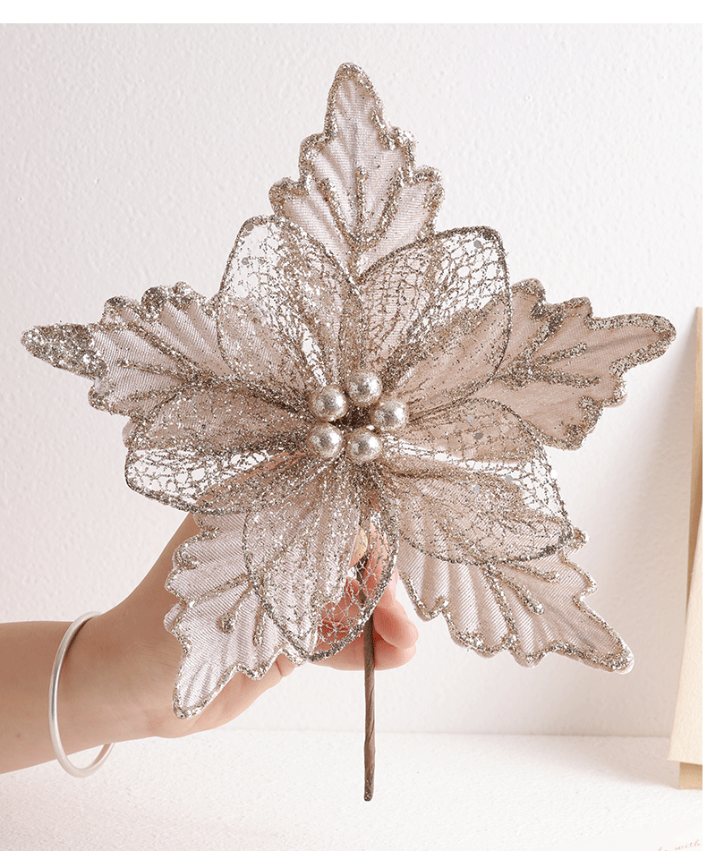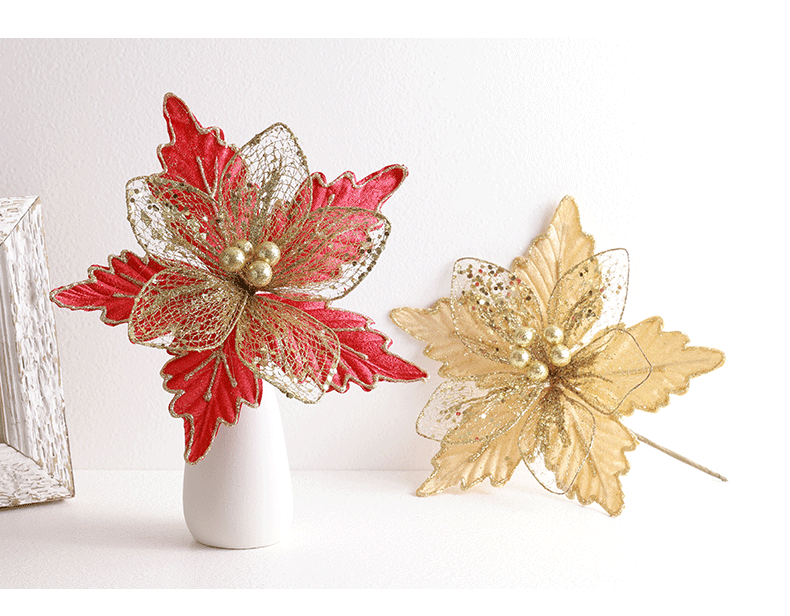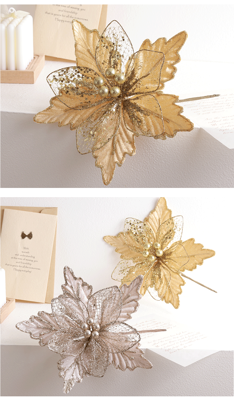 Decoración de árbol de Navidad transfronteriza 24cm oro oro oro rojo champán plata flores de Navidad imitación de flores hotel caña