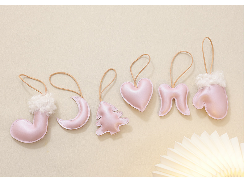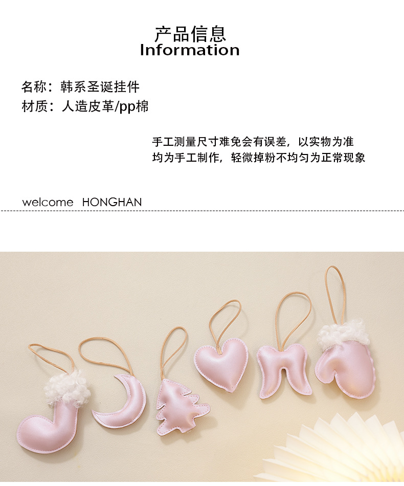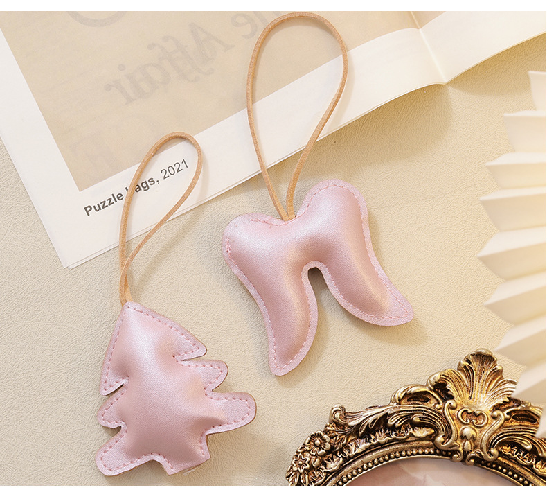 Colgante de árbol de Navidad de madera coreana colgante de cuero rosa blanco DIY material accesorios de paquete decoración de Navidad