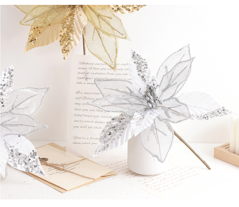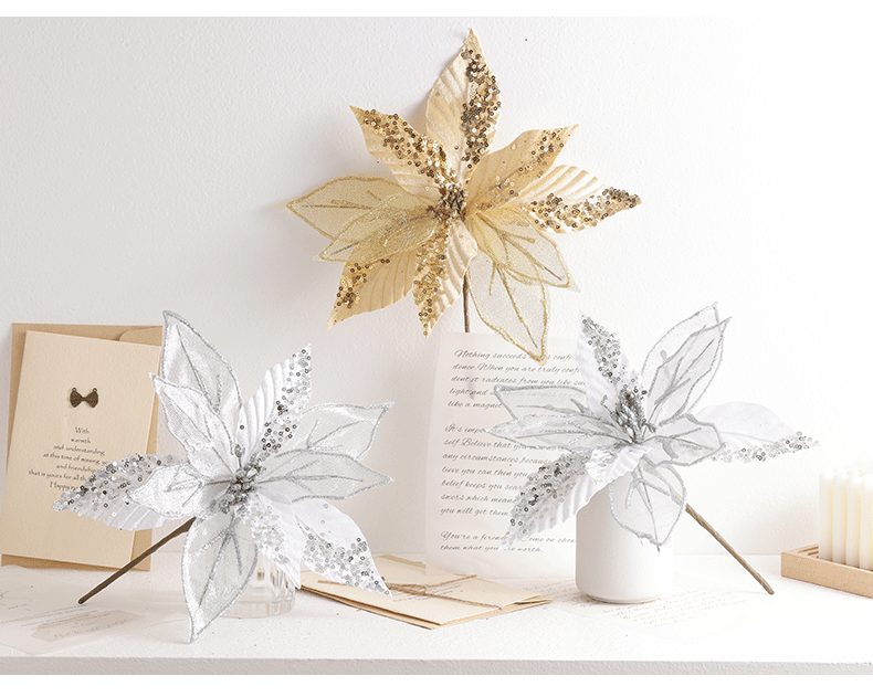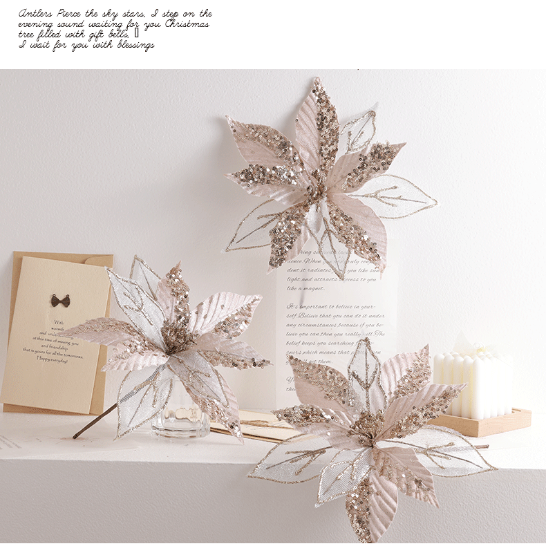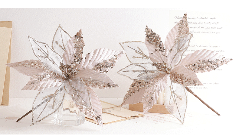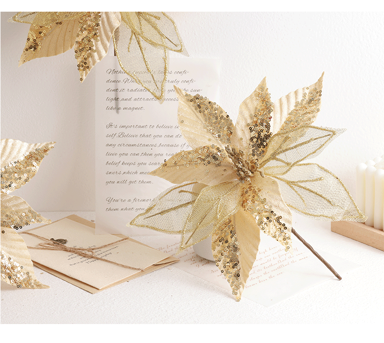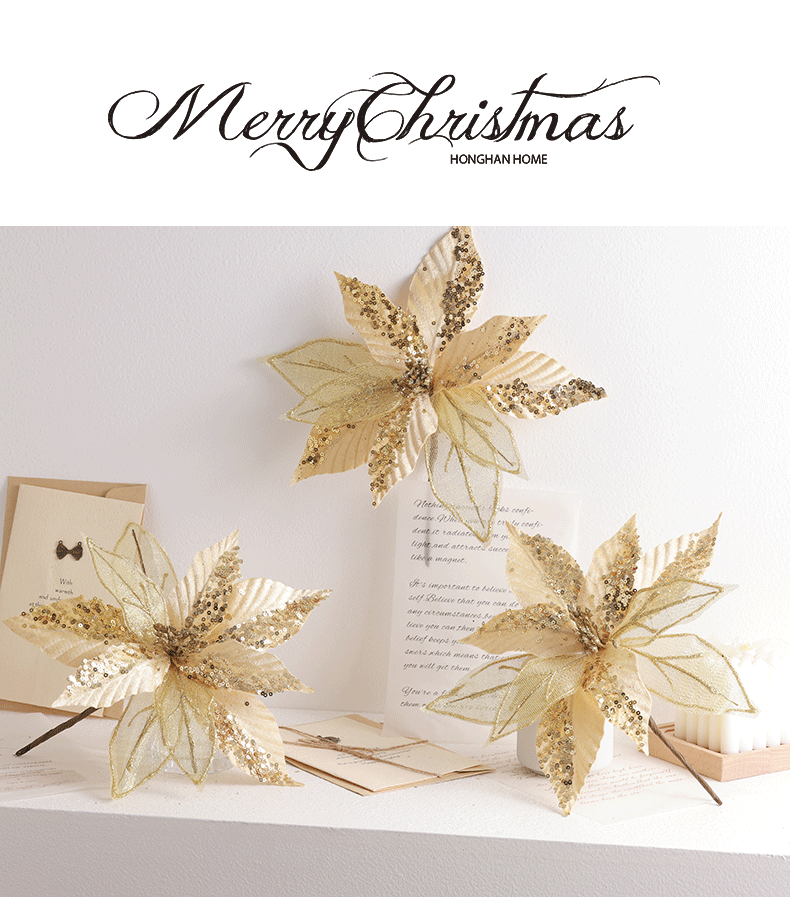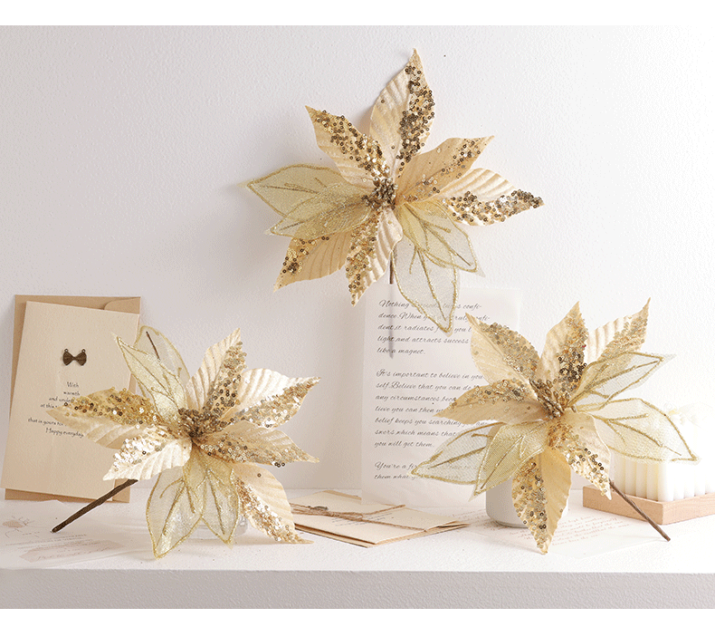 Buscando flores de Navidad transfronterizas 30cm decoraciones de árbol de Navidad de champán oro flores falsas flores hechas a mano flores DIY