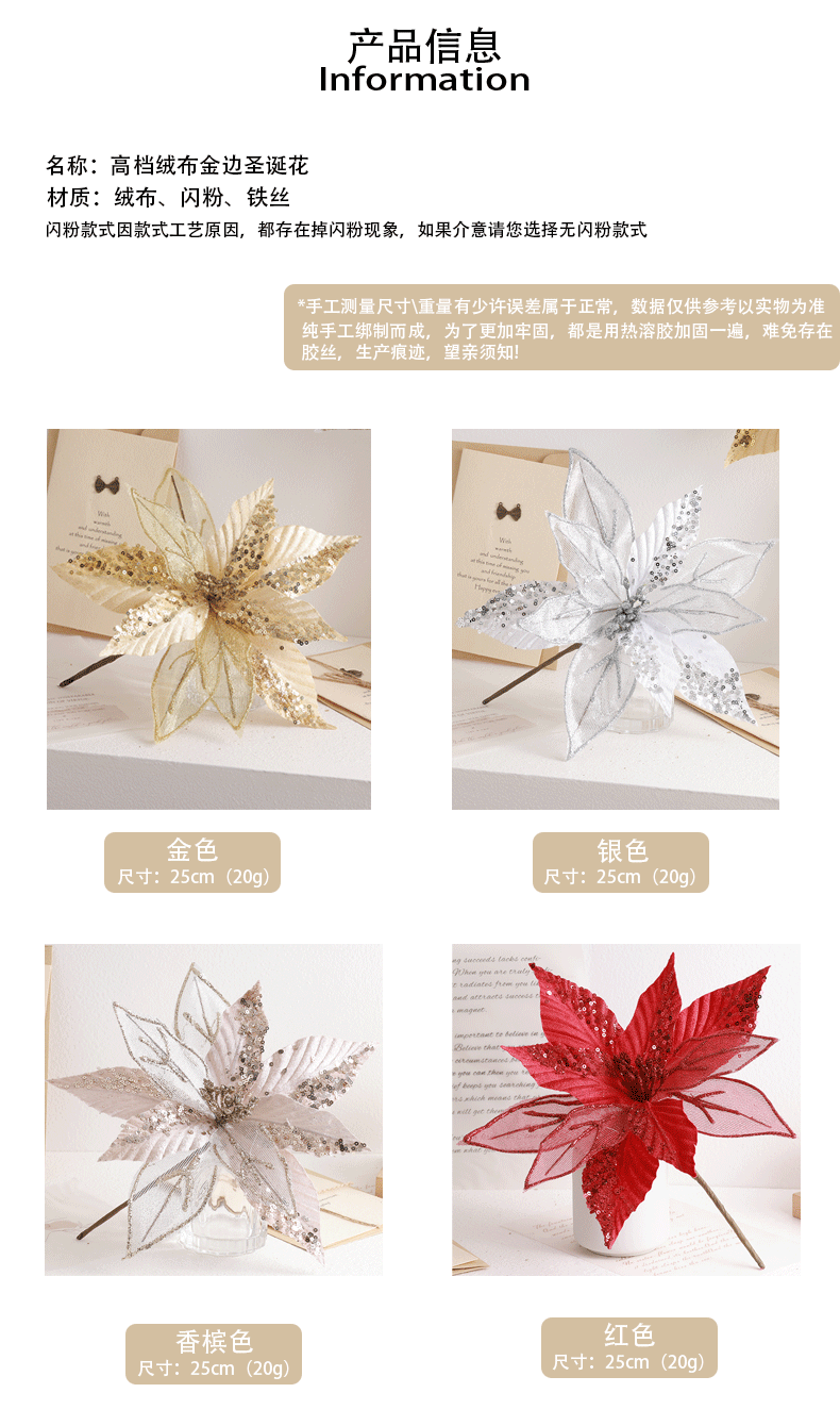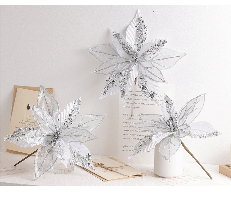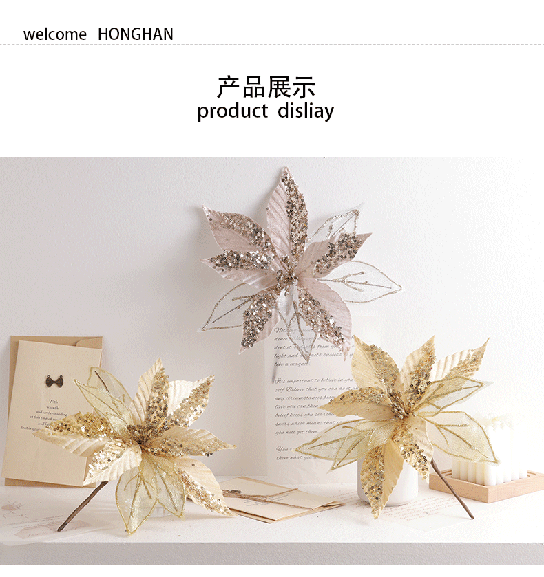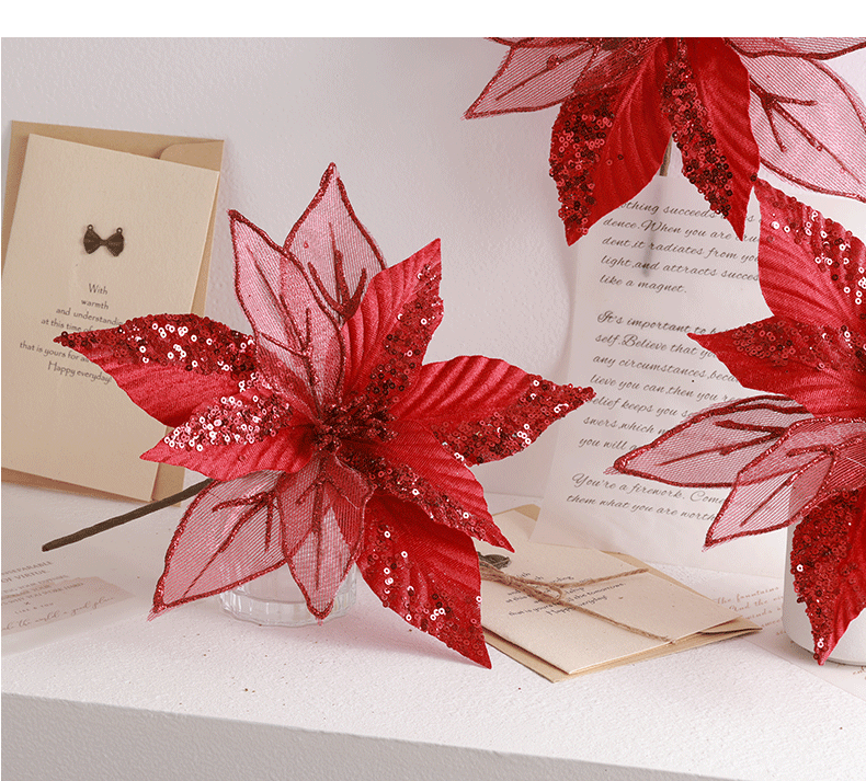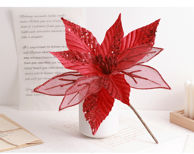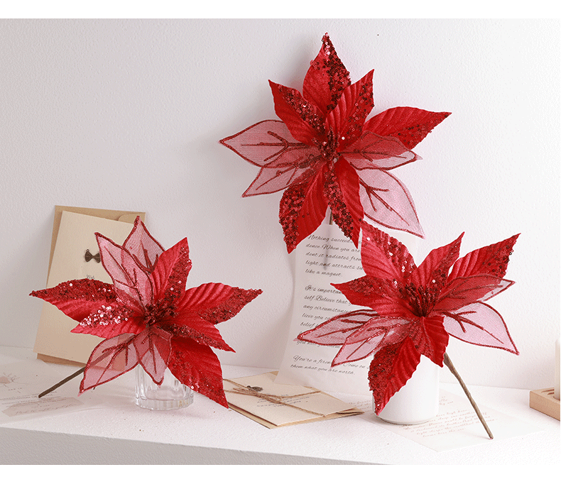 Buscando flores de Navidad transfronterizas 30cm decoraciones de árbol de Navidad de champán oro flores falsas flores hechas a mano flores DIY
