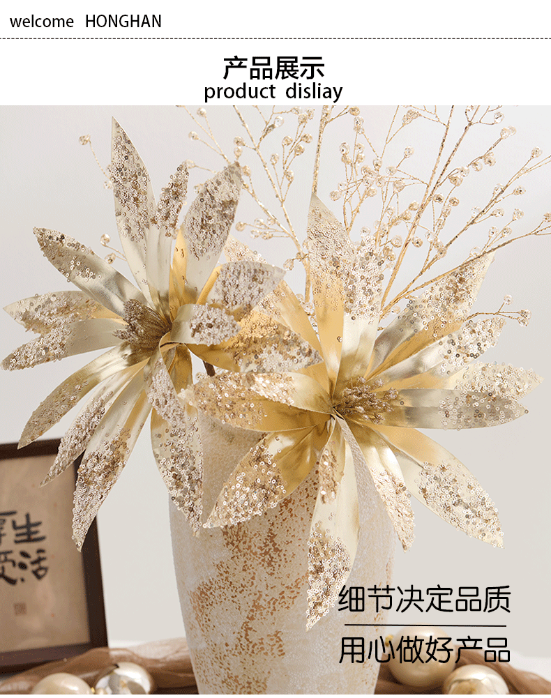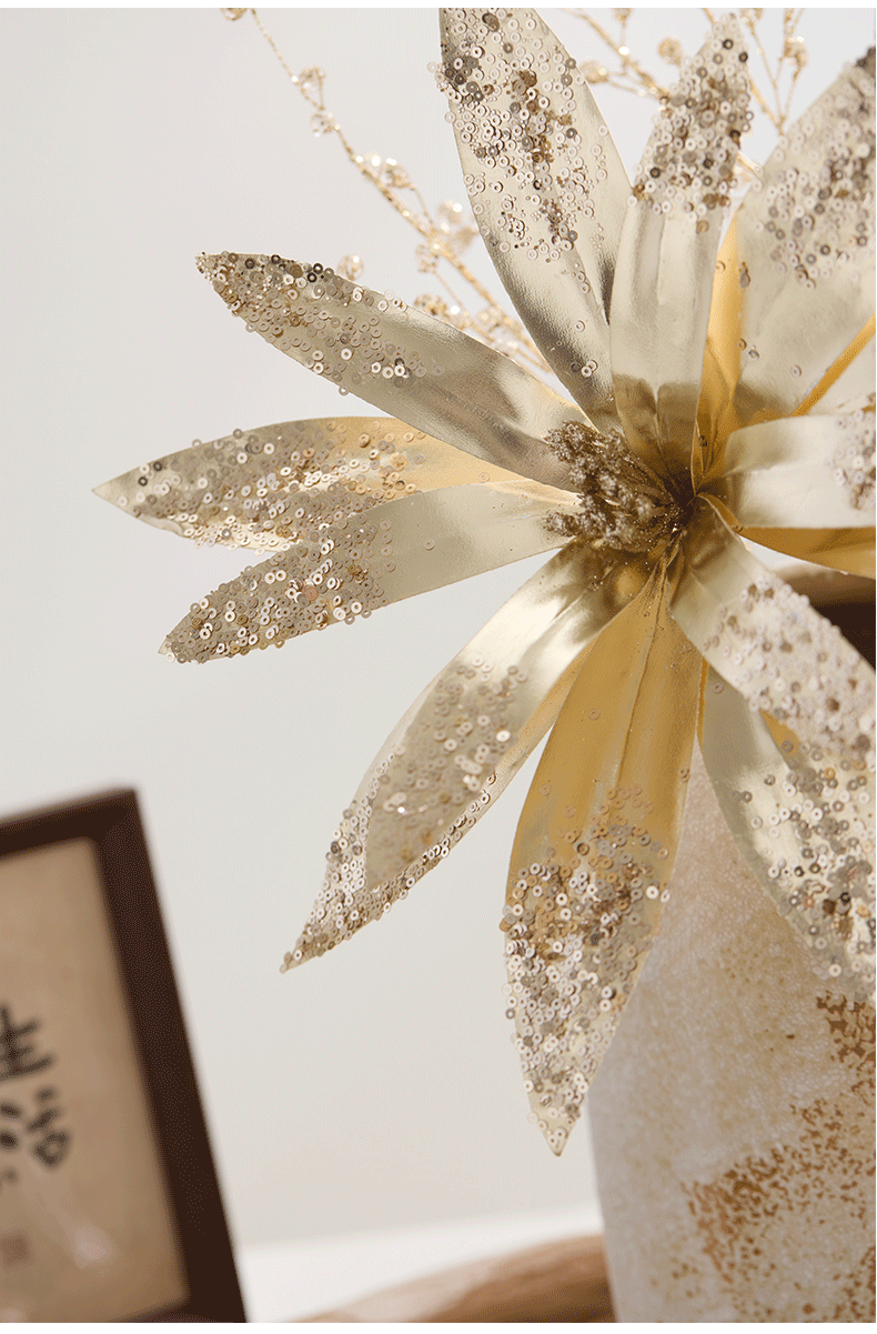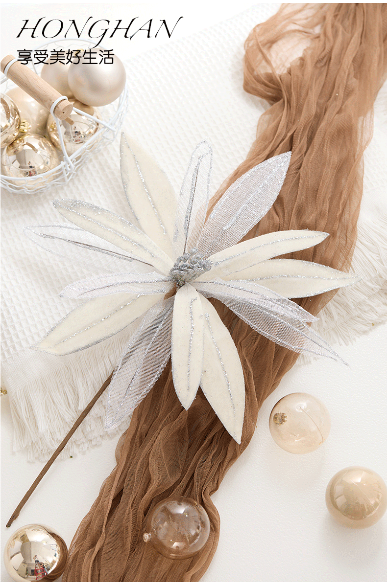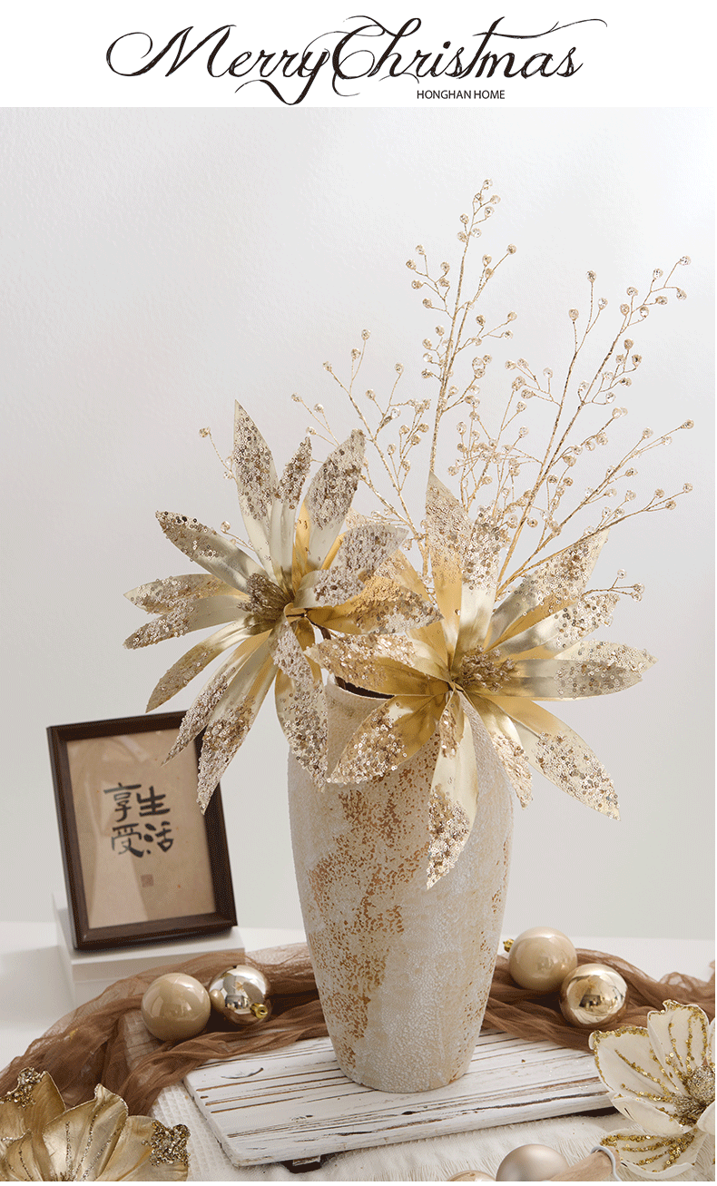 Ventas transfronterizas de flores de Navidad doradas de alta calidad tela brillante super grande flores de Navidad decoraciones colgantes de árbol de Navidad