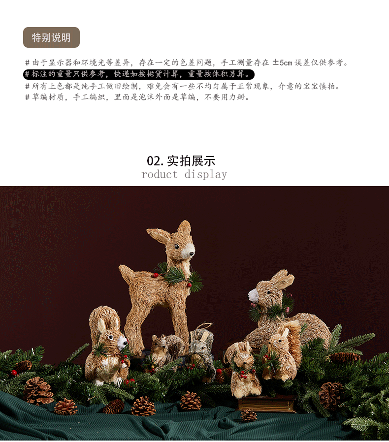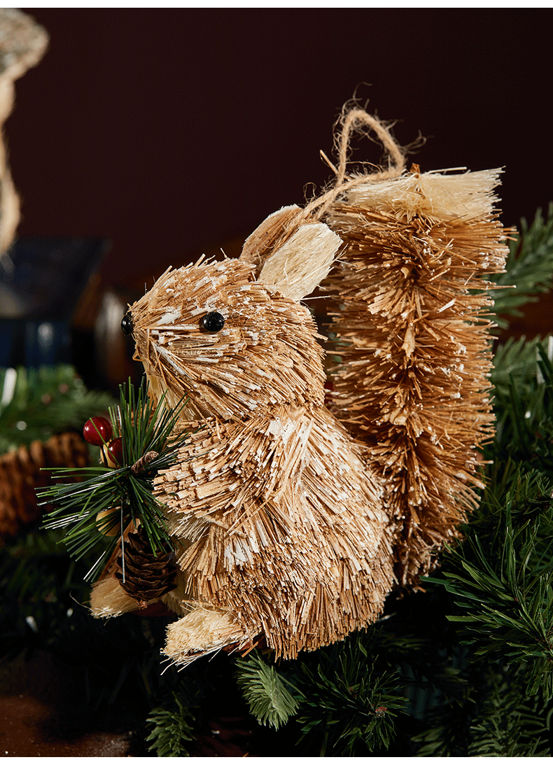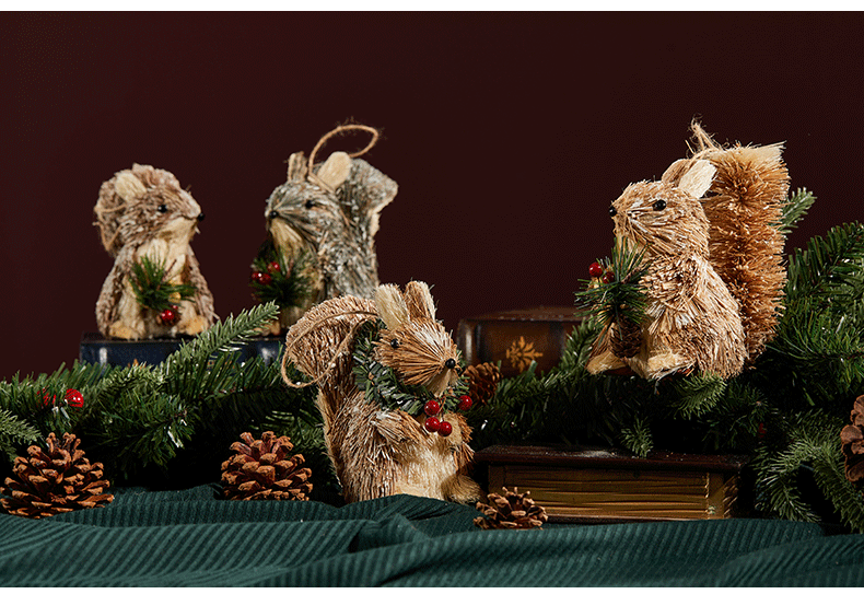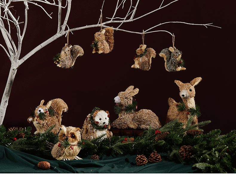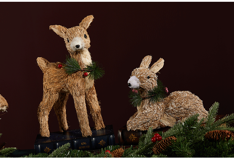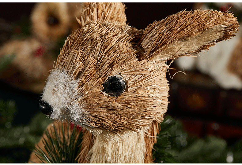 Diseño de animales de Navidad de madera transfronterizo de paja de simulación conejo ornamentos nórdicos de Navidad decoración balcón